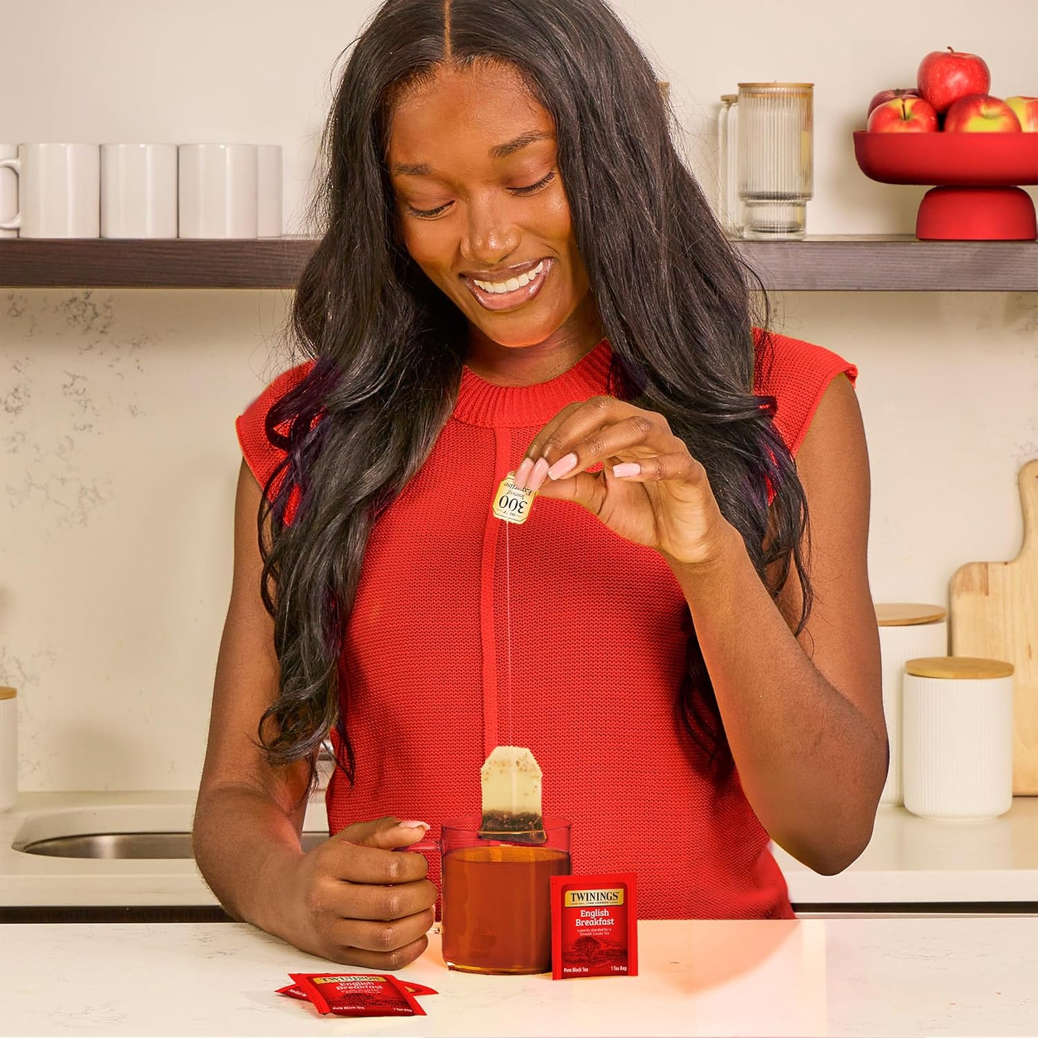 Twinings English Breakfast Black Tea Individually Wrapped Bags, 50 Count (Pack of 6), Flavourful, Robust, Caffeinated, Enjoy Hot or Iced, 300 Teabags