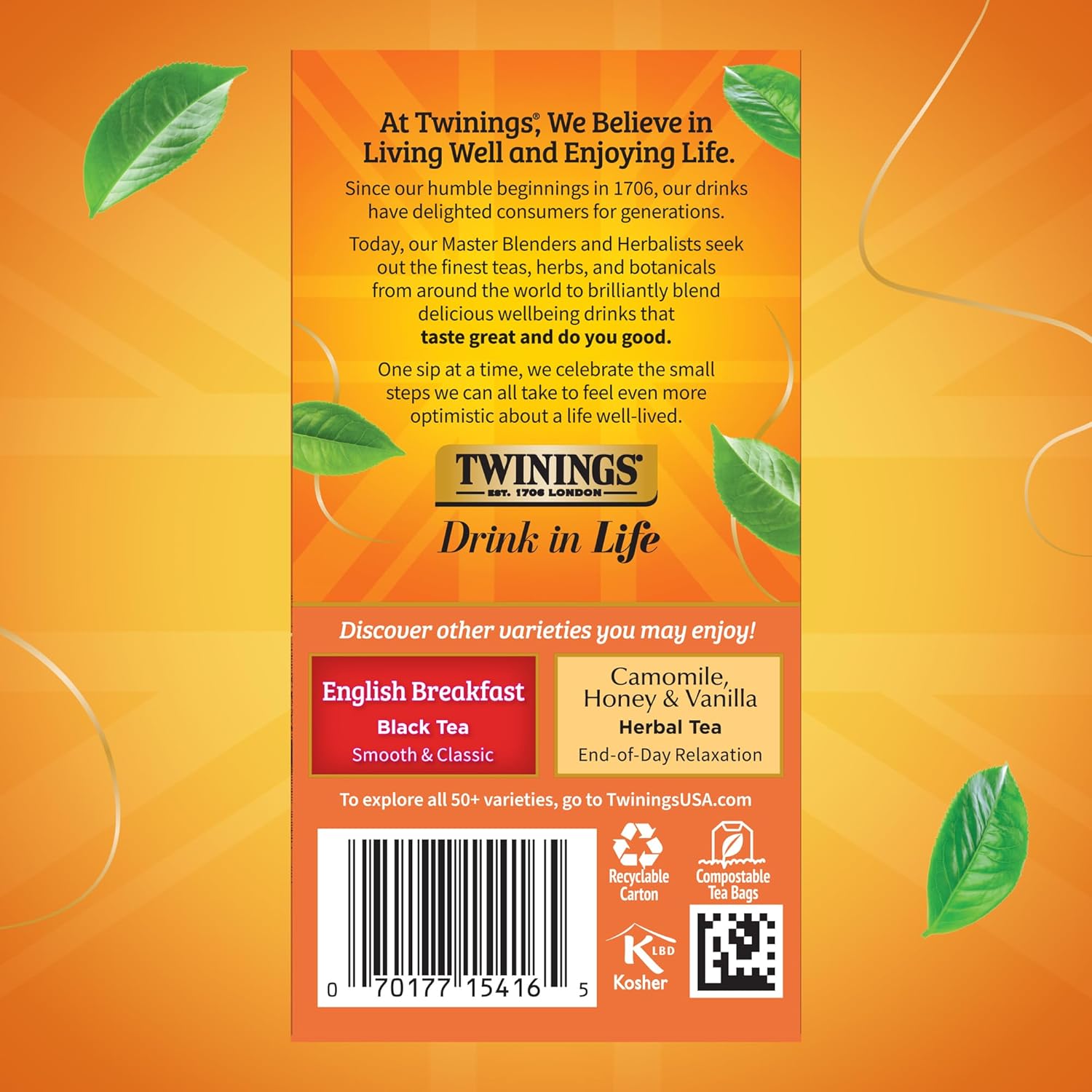 - DRINK IN LIFE: With a signature blend of tradition and innovation, Twinings encourages tea lovers to "Drink In Life" by taking small steps towards feeling good and living well, one sip at a time