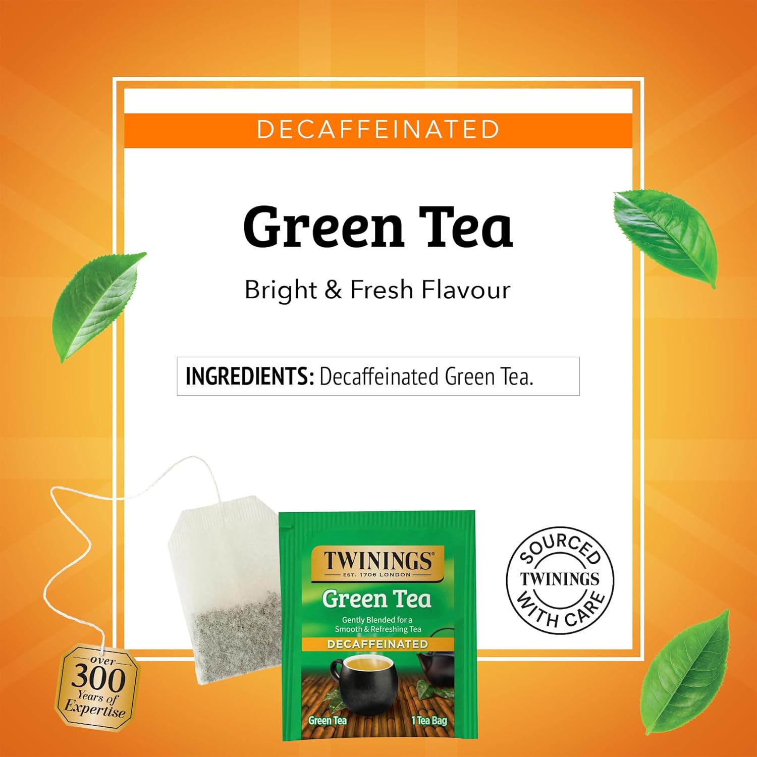 Twinings Decaffeinated Green Tea Individually Wrapped Bags, 20 Count (Pack of 6), Smooth Flavour, Enticing Aroma, Enjoy Hot or Iced, 120 Teabags