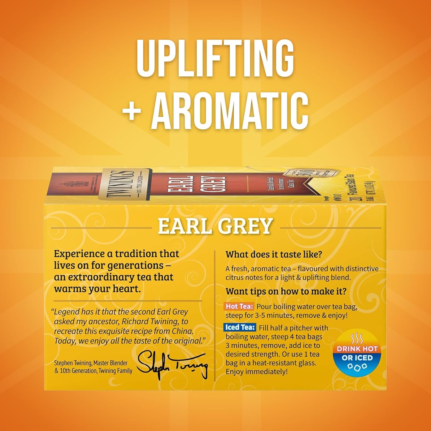 Twinings Earl Grey Black Tea Individually Wrapped Bags, 20 Count (Pack of 1), Flavoured with Citrus and Bergamot, Caffeinated, Enjoy Hot or Iced, 20 Teabags