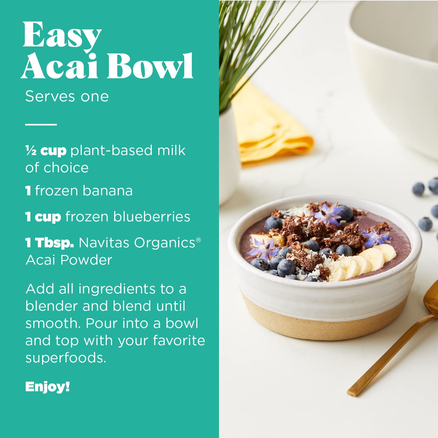 Navitas Organics Acai Powder – for Smoothie Bowls, Oatmeal, Dips, Sauces & More – Antioxidants, Omega 3 6 9, Fiber - USDA Organic, Non GMO, Kosher, Gluten Free, Keto (8oz. Bag, 76 Servings)