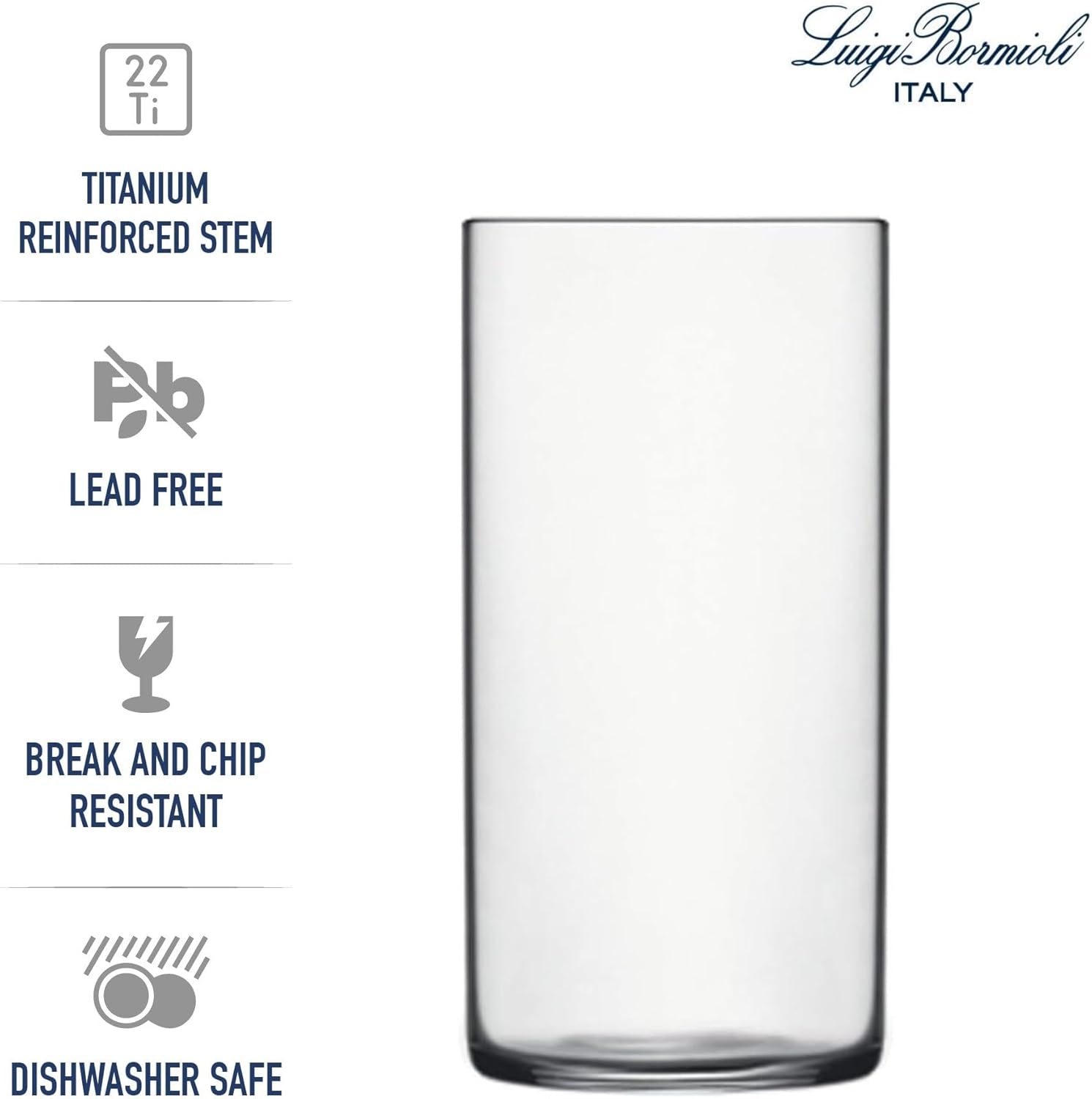 Luigi Bormioli Top Class 11.75 oz Highball Glasses, Set of 6 - Italian Tall Drinking Glasses for Cocktails, Water, Juice - Durable Lead-Free Crystal Drinkware with Reinforced Rims, Modern Glassware