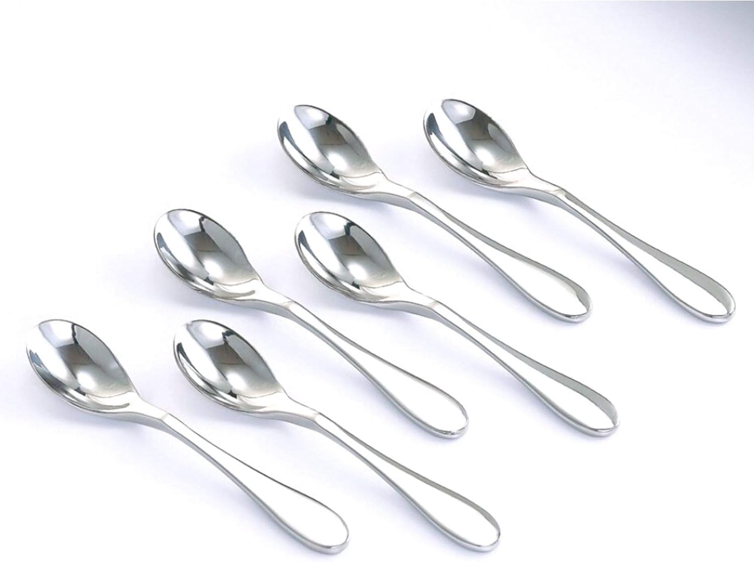 Knork Stainless Steel Demitasse Spoon (Set of 6), Shiny Gloss Silver, Tiny Coffee-Appetizer Specialty Spoons