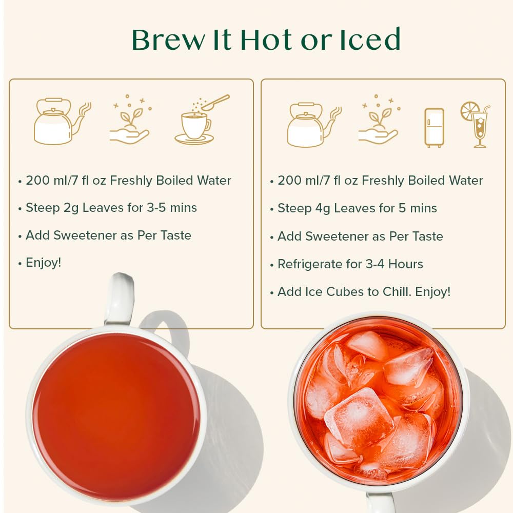- DIRECTLY SOURCED FROM PREMIUM PLANTATIONS - Experience the finest Whole Loose Leaf Tea, sourced from premium Indian plantations. Vacuum-sealed and packed within 24-72 hours of harvesting, it offers garden-fresh aroma and taste. Savour 100% pure tea, packed in a 3-layered moisture-resistant resealable bag for lasting freshness. Preparation: 2g of loose leaf | 200 ml water at 100° C | 3 - 5 mins