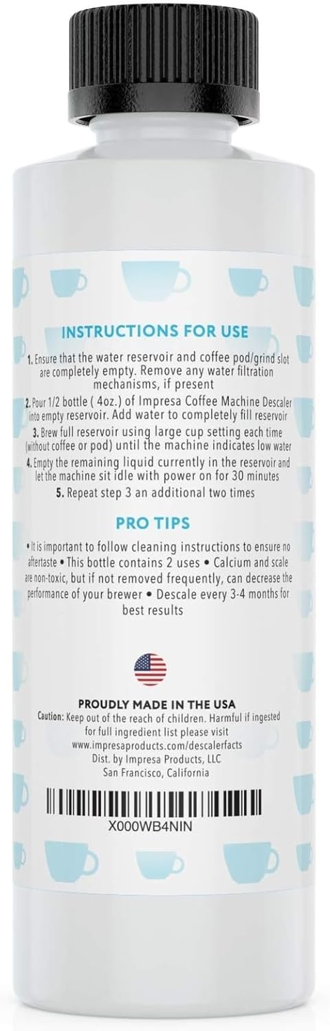 IMPRESA Coffee Machine Descaler (2 Uses Per Bottle) - Made in the USA - Universal Descaling Solution, Compatible with Nespresso, Delonghi and All Single Use Coffee and Espresso Machines