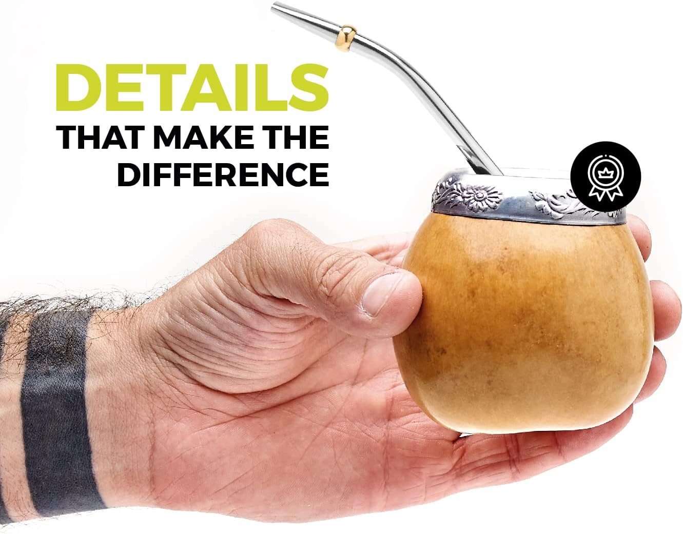 - NATURAL MATE SET - Balibetov traditional Calabash Gourd set is handmade in Argentina from a complete natural fruit. The set includes A calabash Mate Gourd, a stainless steel Bombilla straw and a cleaning brush. The carved design ring rim details make each piece a work of art. Enjoy the Mate - A Beverage rich in antioxidants and nutrients the original way, with an all-Natural Gourd!