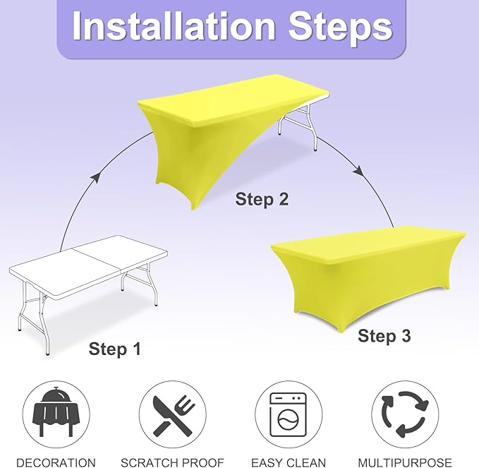 - 3.Which One Should You Choose?: Whether you're using for everyday use in your home or in commercial establishments such as restaurants, hotels and cafes. Our inexpensive rectangle spandex table covers which have the size of 4FT, 5FT, 6FT, 8FT and multicolor will match your table and decor perfectly. Table covers in multipacks are even more cost effective because after taking into account the cost of packaging and transportation.