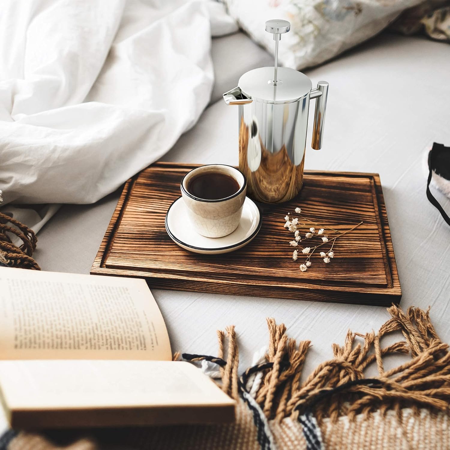 - Double-Walled French Press – Make perfectly brewed coffee at home like a barista. The double-walled coffee press is heat resistant. Its solid construction will keep the drink hot for a long time.