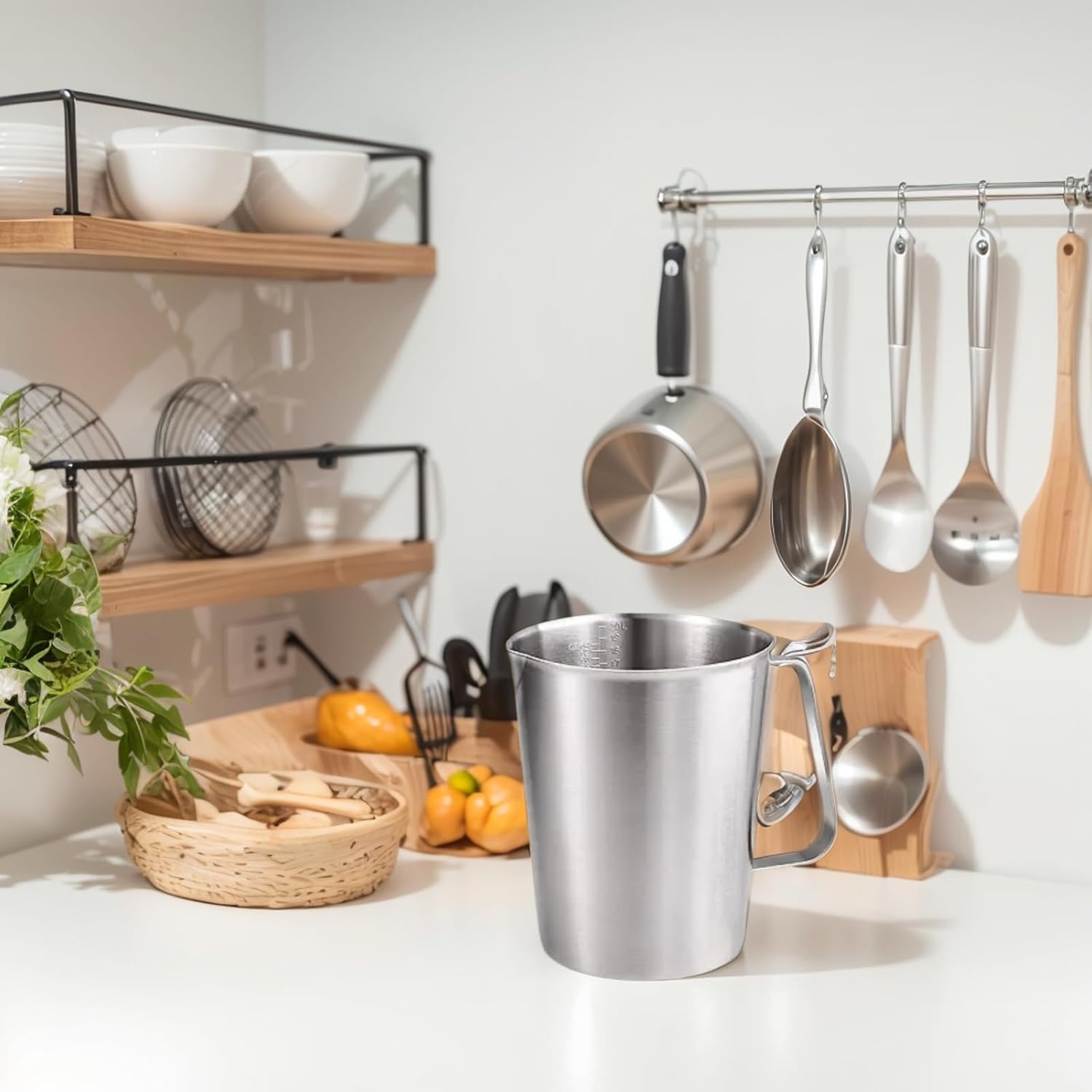 KSENDALO 1.0L/32oz SUS304 Stainless Steel Measuring Cup - Precision Engraved Markings for Liquid, Coffee, Milk & Espresso - 4 Cup Kitchen Mixing Pitcher, Container for Baking & Frothing