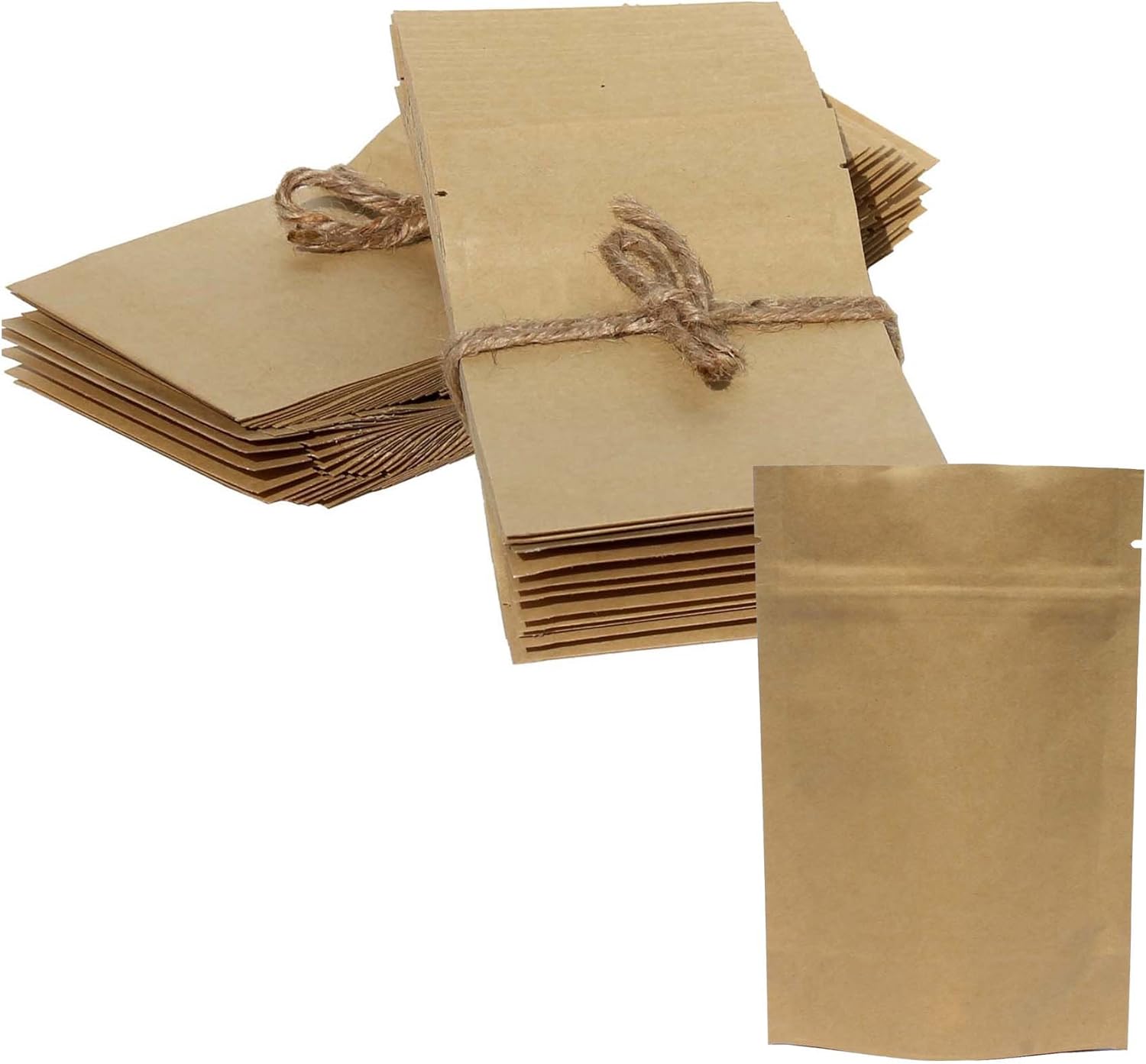 2 oz Stand up Zipper Pouch Bag - FDA and USDA Compliant Heavy Barrier 4X6X2 Inch (100, Natural Kraft)