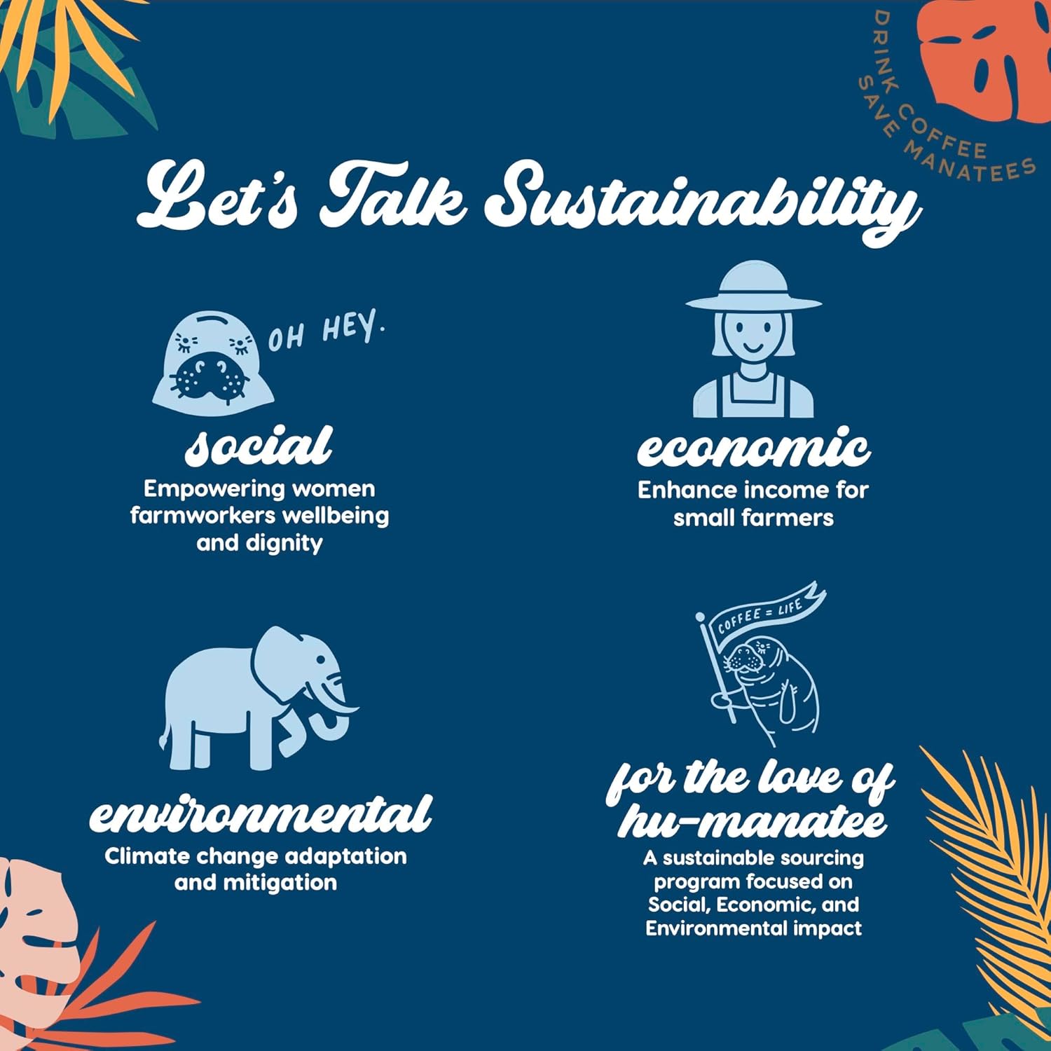 - DRINK COFFEE. SAVE MANATEES: We support manatees and their habitats with compassion and action. Manatee coffee regularly donates to trusted organizations like Save the Manatee Club, Fish & Wildlife Foundation, and Mote Marine Laboratory. Your purchase of premium high quality coffee helps us increase our support to these wonderful organizations.