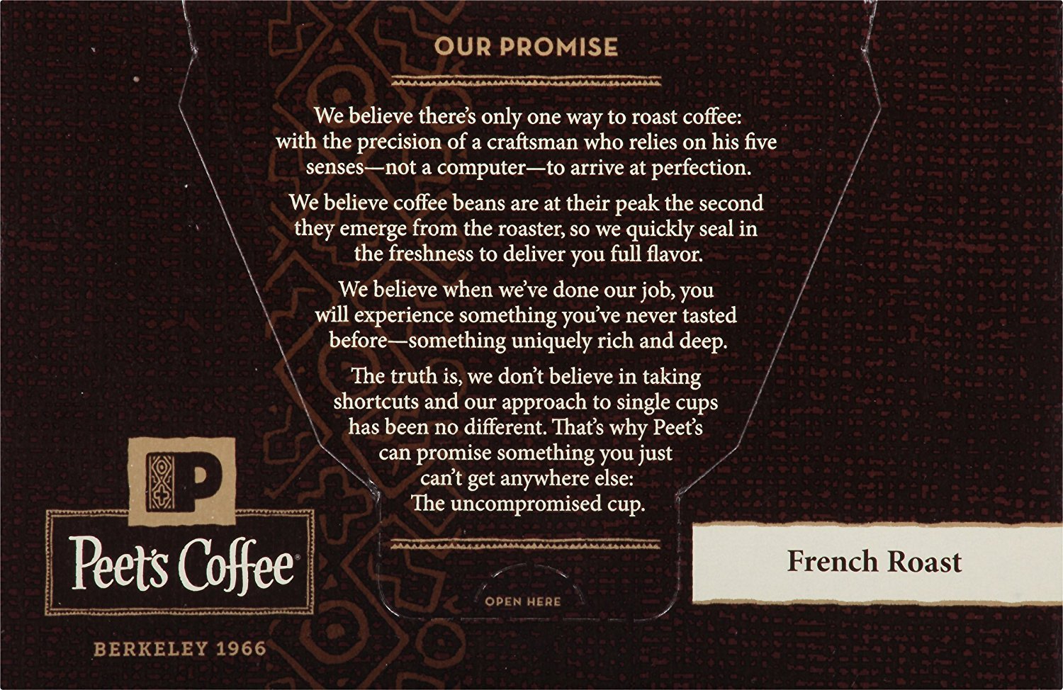 - FRENCH ROAST: The rich coffee character of French Roast comes from a longer, hotter roast, which not all beans can handle and only Peet’s has perfected