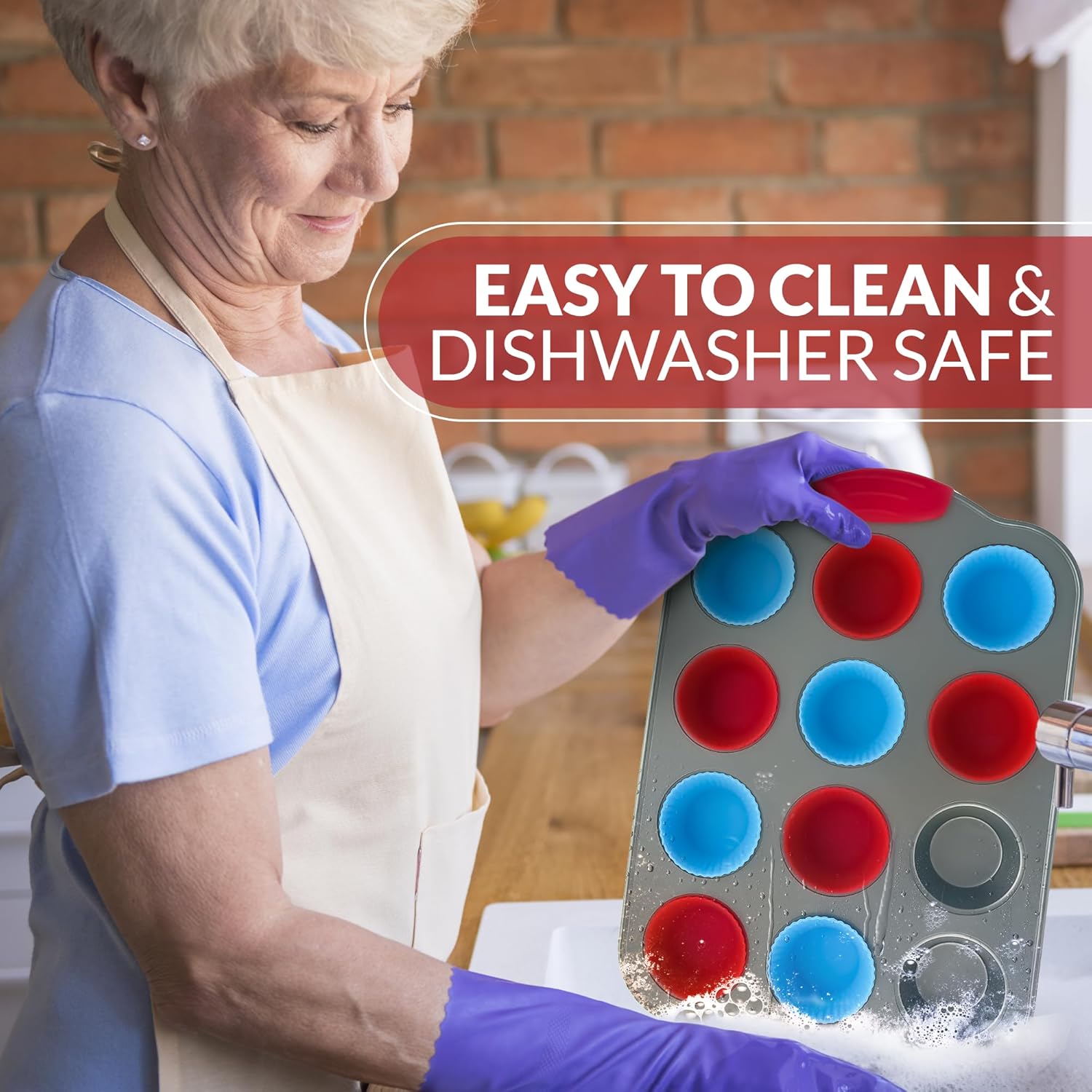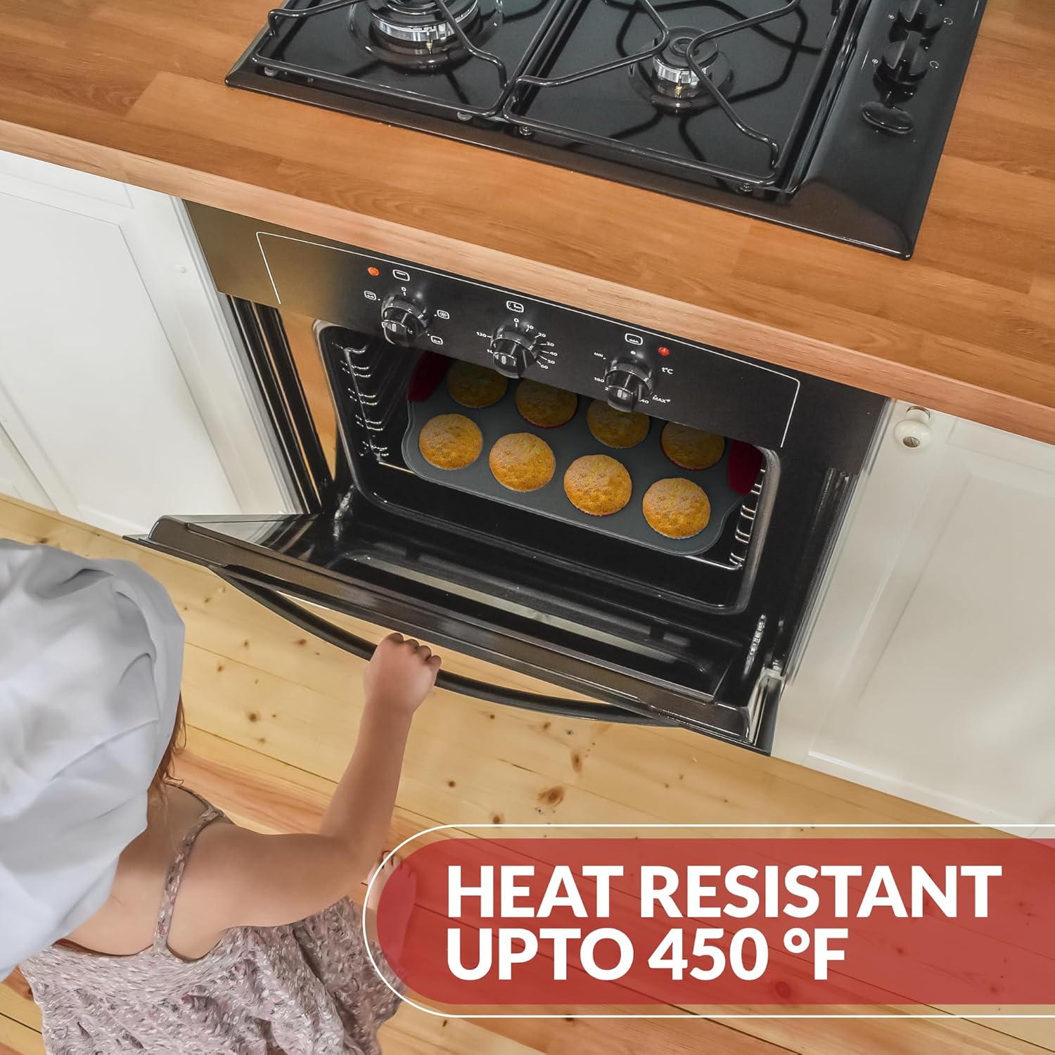 - PROFESSIONAL DESIGN - Wide handles of this mini muffin pan for toaster oven allow a firm grip; textured silicone grips are comfortable and secure.High quality non-stick silicone cups of this muffin tin for baking are dishwasher,freezer and oven safe