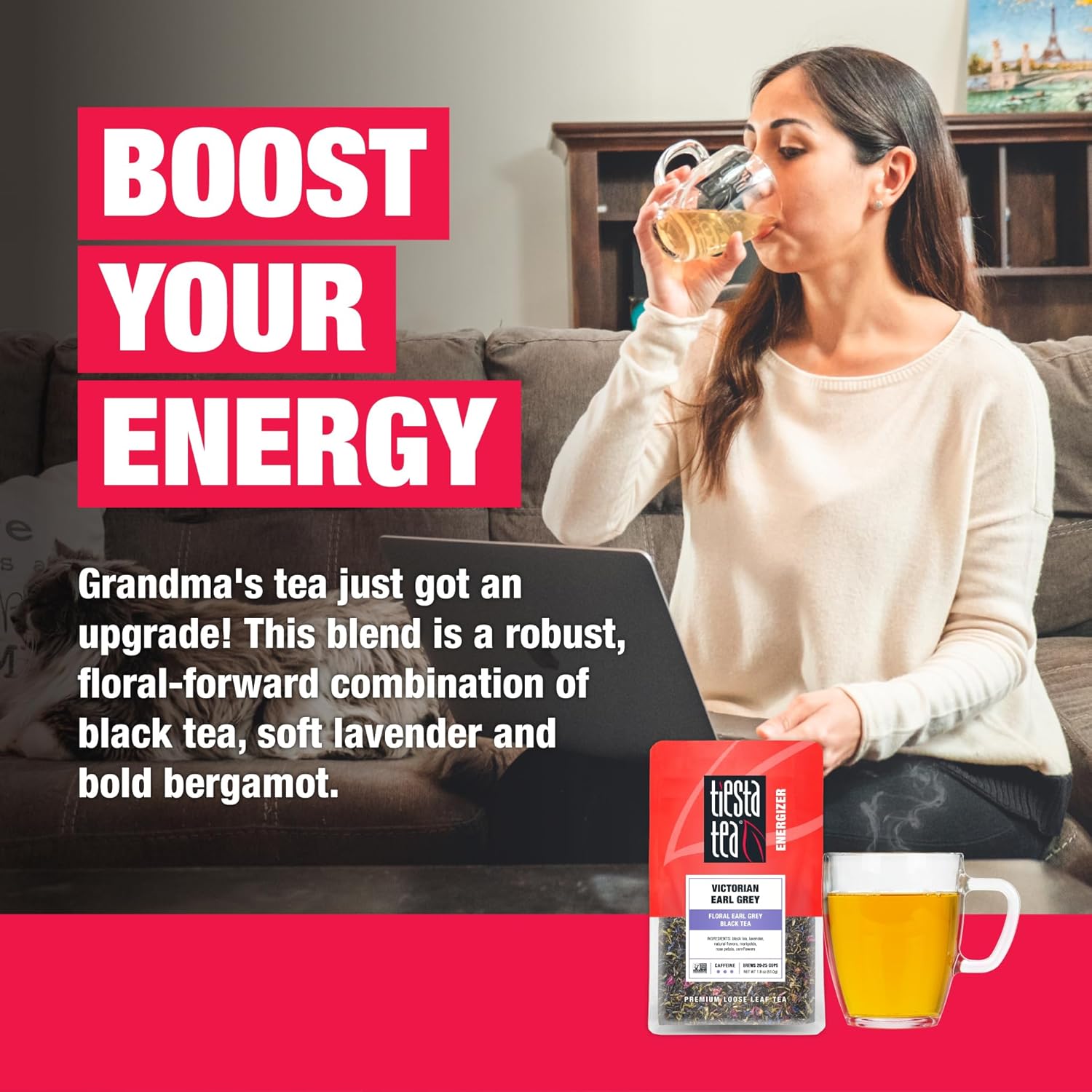 Tiesta Tea - Victorian Earl Grey, Loose Leaf, Floral Earl Grey Black Tea, Premium Blend, High Caffeinated Black, Make Hot or Iced Brews Up to 25 Cups, 1.8 Ounce Resealable Pouch