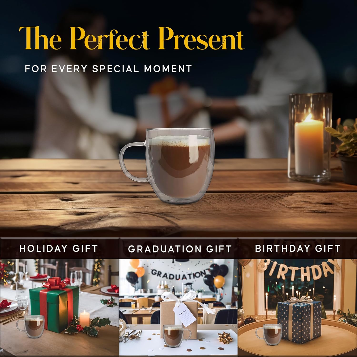 - Thoughtful Gift For Any Occasion - Enjoying your cappuccino or latte mug? Share the joy with others! Functional and stylish, Kitchables’ double walled glass coffee mugs are practical, memorable gifts for your loved ones.