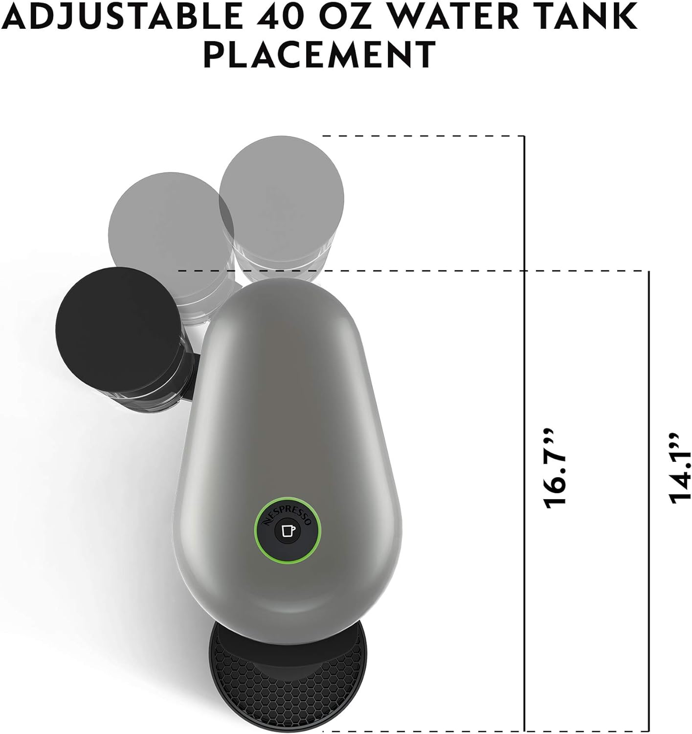 - INCLUDES: One Vertuo Nespresso coffee machine with a large 40 ounce water tank, a 10 count used pods container.