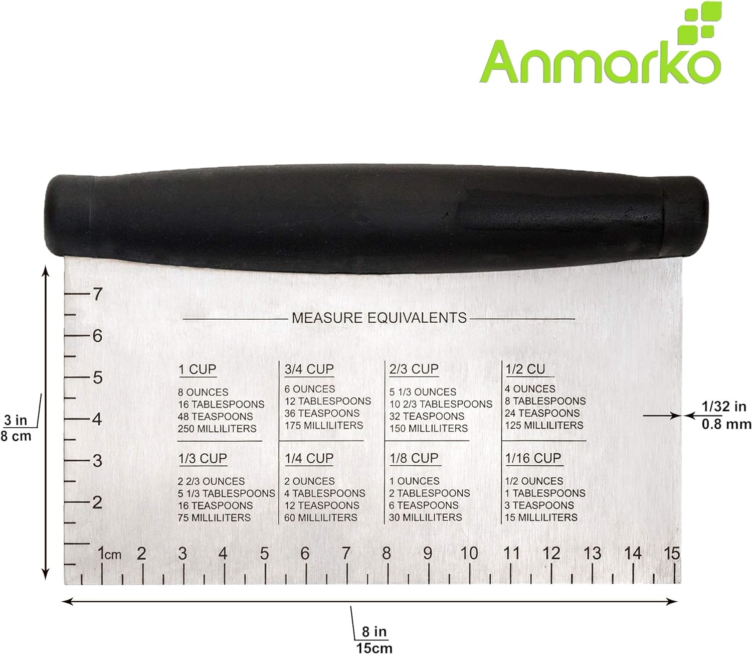 - Made from sturdy stainless steel - non-reactive, hygienic and durable. Heavy duty, scraper metal blade thickness is 1/32 inch.