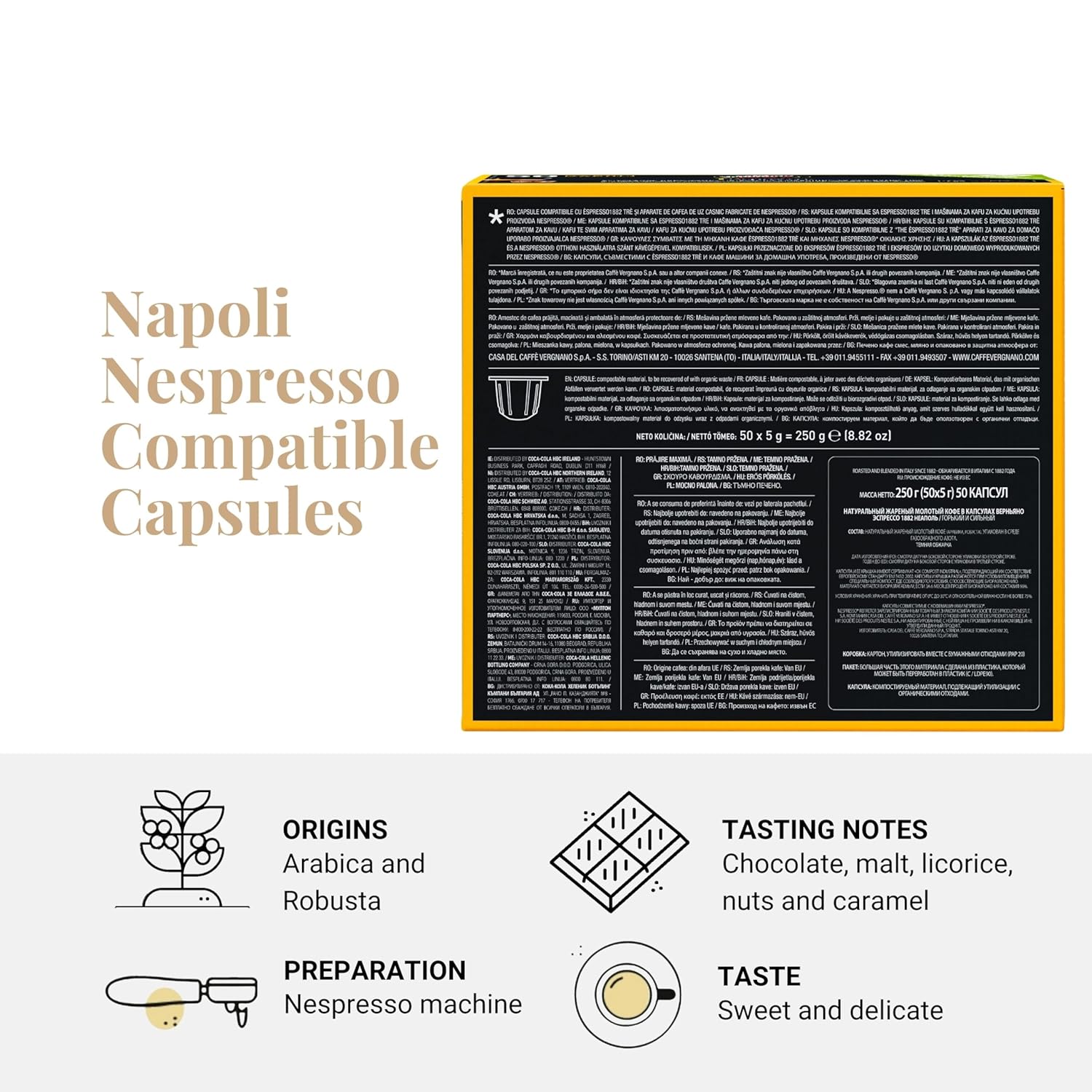 • Designed for Nespresso Machines – Caffè Vergnano Napoli espresso capsules are fully compatible with Nespresso coffee machines, offering seamless preparation for a quick and easy espresso. Enjoy a bold, Italian-style espresso at home with these convenient single-serve coffee capsules designed for busy coffee aficionados.