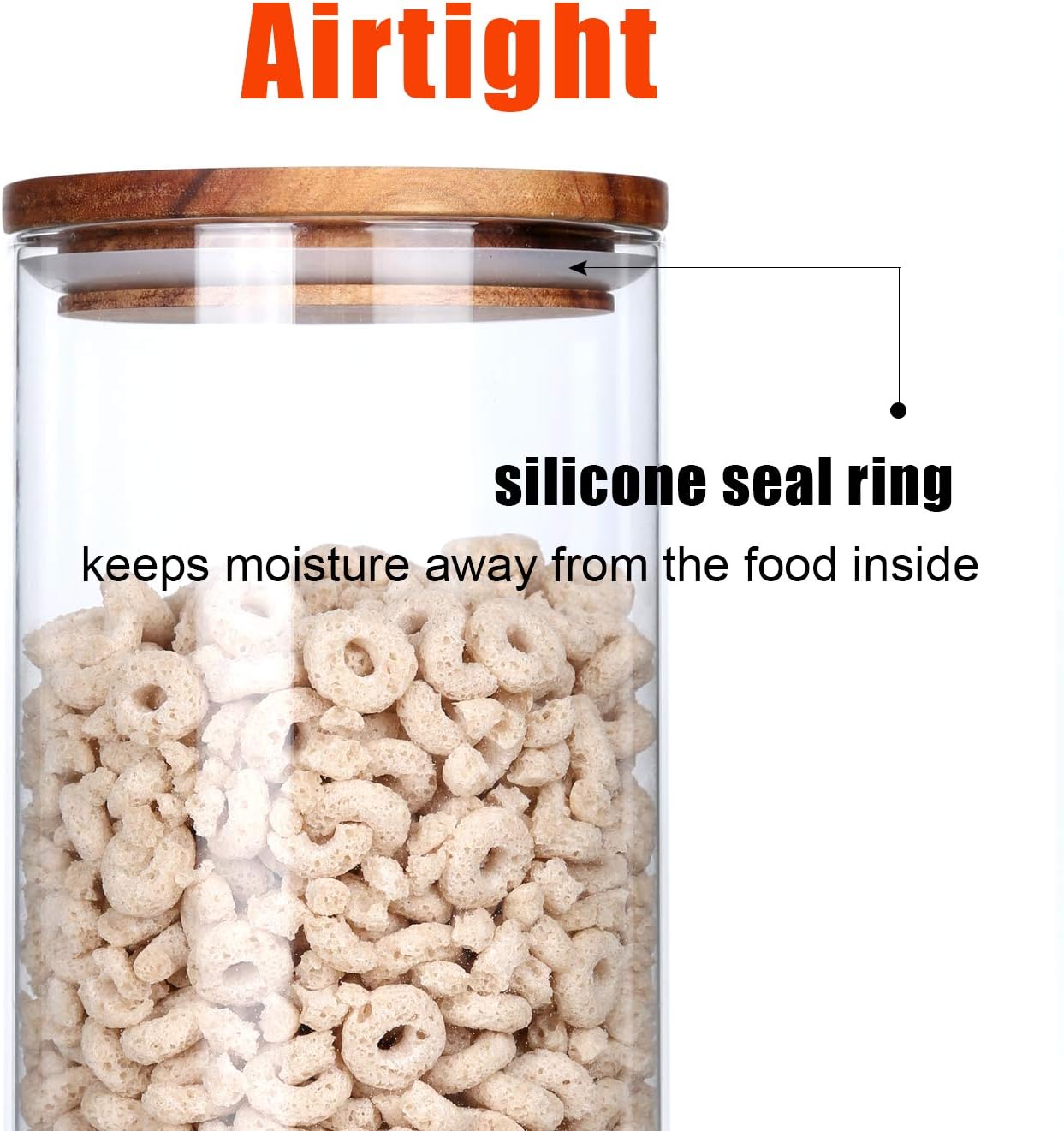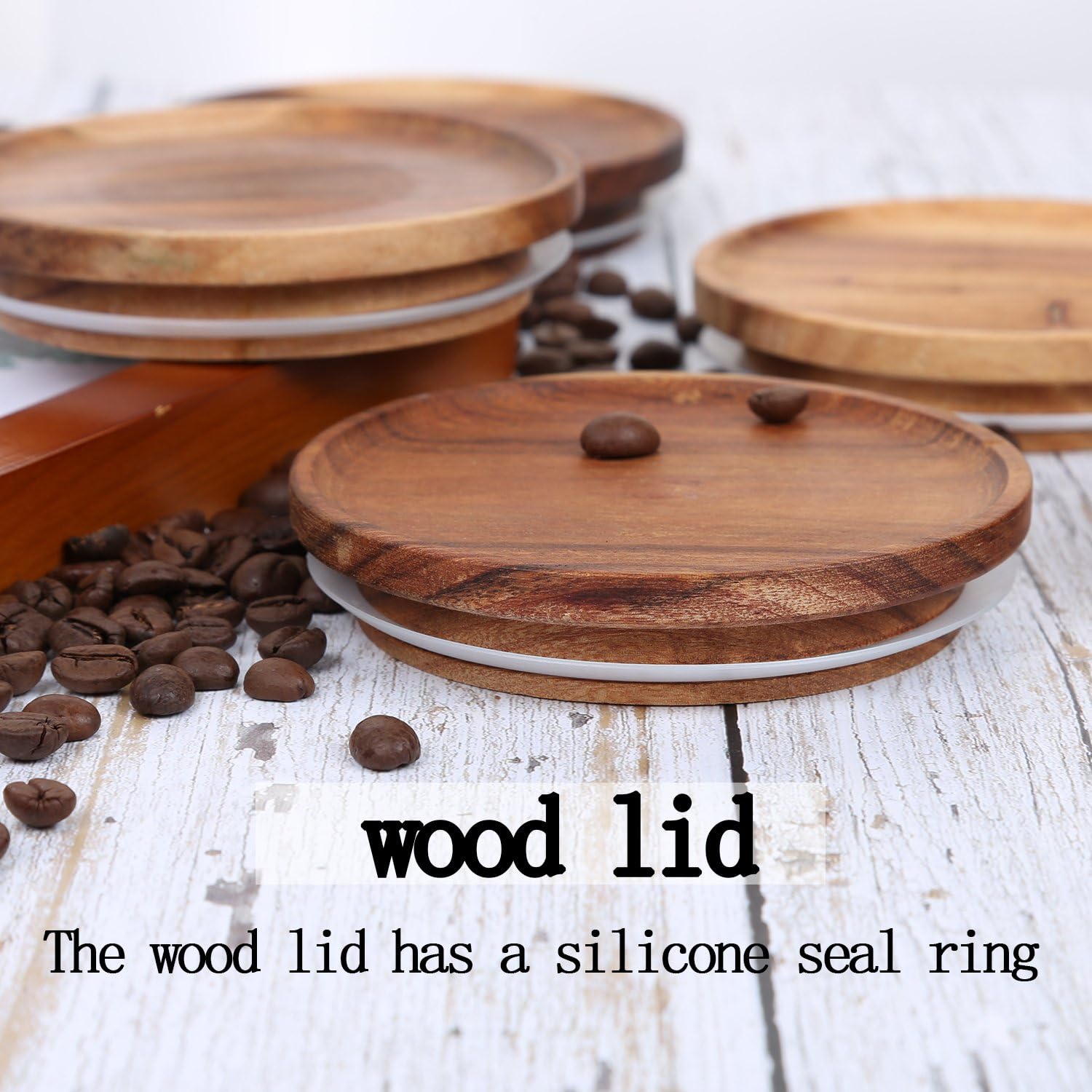 - Airtight Glass Jars:The airtight wooden lid has a silicone sealed ring,the silicone sealed ring acts as a seal keeping its contents fresh.perfect for storing coffee beans,loose leaf tea,cocoa,matcha,ground coffee,brown sugar,candy,etc.