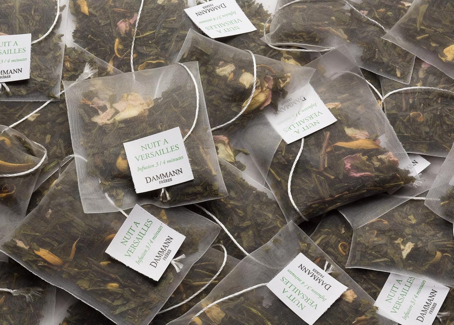 Dammann Freres Sachets, Nuit À Versailles Tea Bags, Premium Gourmet French Green Tea, Blend Bergamot, Kiwi, Peach Flavors, 25 count (Single Pack)