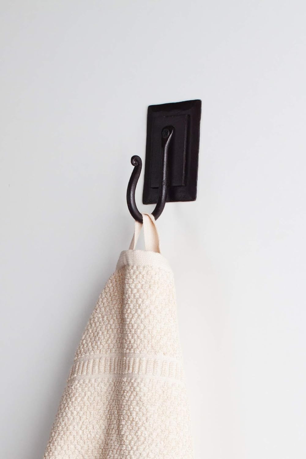 - HEAVY DUTY BLACK TOWEL HOOK - Premium Quality Durable Wrought Iron Coat Hooks. Super Strong Brushed Rust Free Metal Wall Hooks with Antique Finish for Solid Style. Hat Hangers for Wall or Towel Hooks for Bathrooms