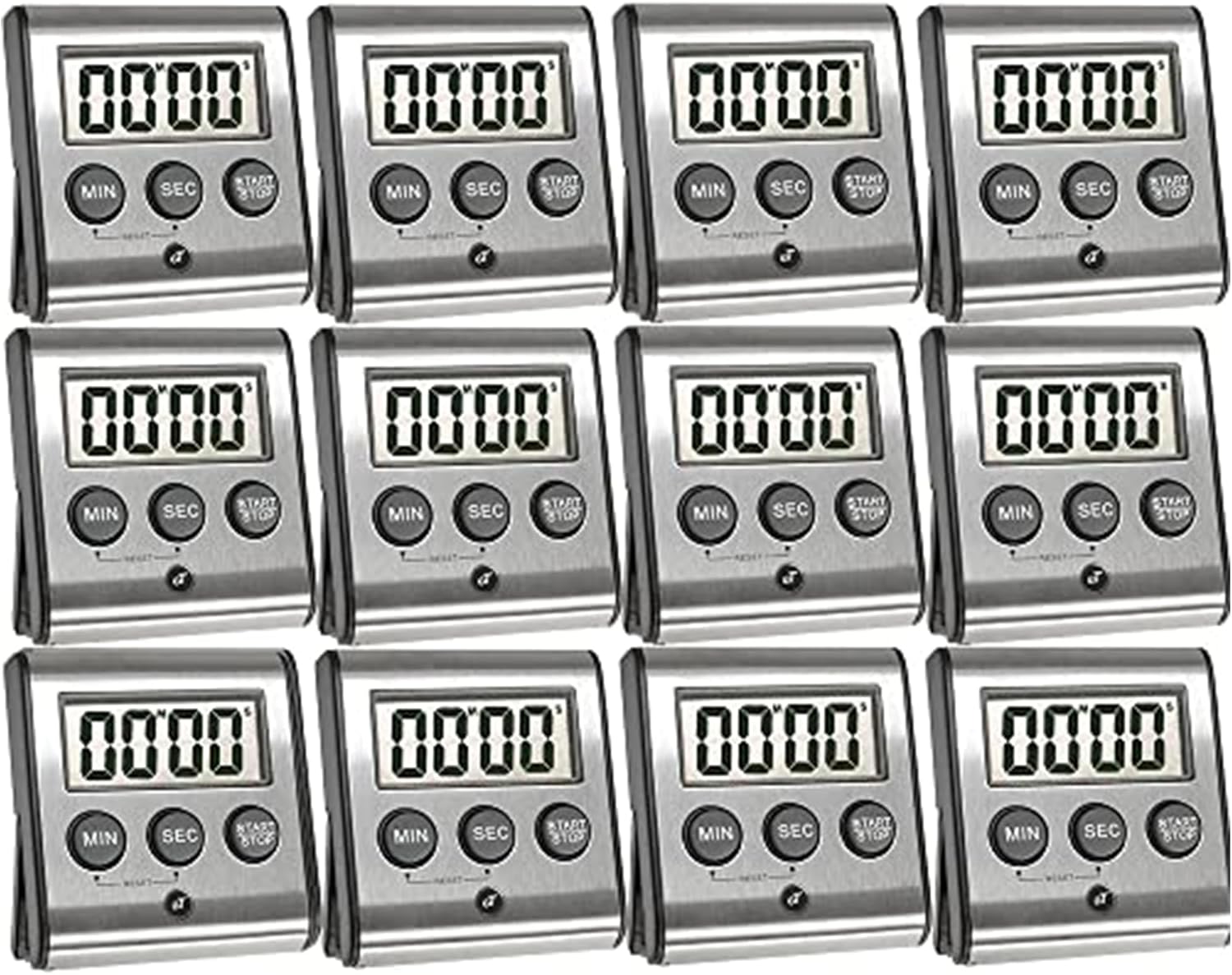 Elegant Digital Kitchen Timer - Stainless Steel Model eT-23, Super Strong Magnetic Back, Loud Alarm, Large Display, Auto Memory, Auto Shut-Off (12-Pack eT-23)