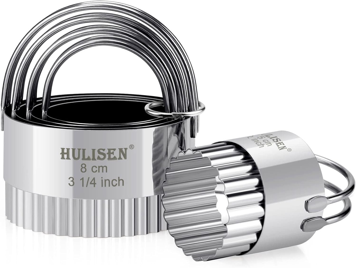 HULISEN Biscuit Cutter Set (5 Pieces/Set), Stainless Steel Round Biscuit Cutters with Handle, Wave Cookies Cutter with Fluted Edge, Professional Baking Dough Tools, Gift Package (Wave)