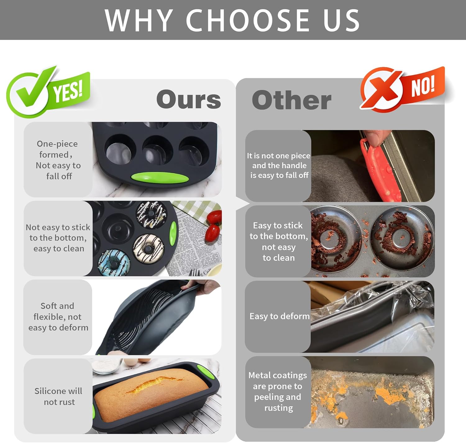 To encounter 41 Pieces Silicone Baking Pan Set, Silicone Cake Molds, Baking Sheet, Donut Pan, Muffin Pan with 36 Pack Baking Cups, Dishwasher Safe