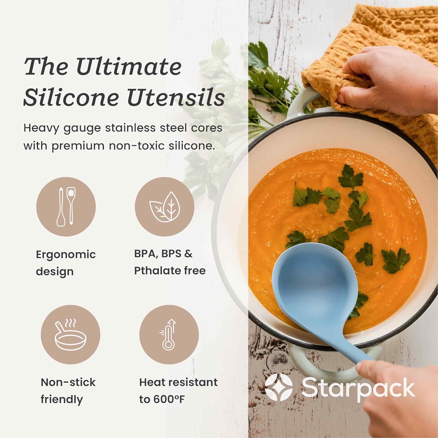 Starpack 'Like a Boss' XL Premium Silicone Cooking Utensils Set (6 Pcs) - Heat Resistant Kitchen Utensils 600°F - Non-Stick Silicone Utensil Set - Large Kitchen Utensils Set for Cooking & Serving