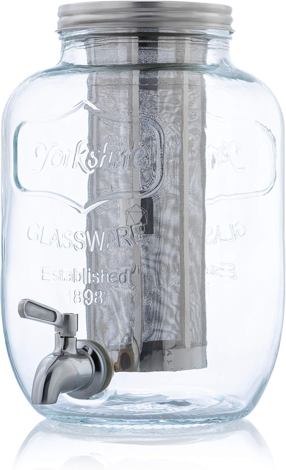 Original Grind Coffee Co.,1 Gallon Cold Brew Coffee Maker,Easy Pour Stainless Steel Spigot Tap,Extra Thick Glass Pitcher Brewing System Iced Coffee Maker,Refrigerator Safe Storage