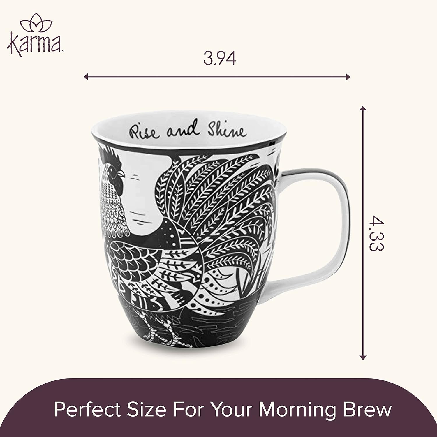 Karma Gifts 16 oz Black and White Boho Mug Rooster - Cute Coffee and Tea Mug - Ceramic Coffee Mugs for Women and Men