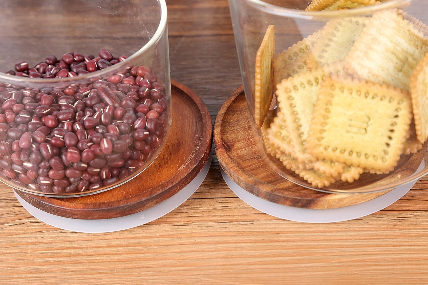 - Premium Materials:The glass jar is made from high-quality, food-grade clear borosilicate glass with exceptional clarity and thermal resistance.The lid is made from natural acacia wood.