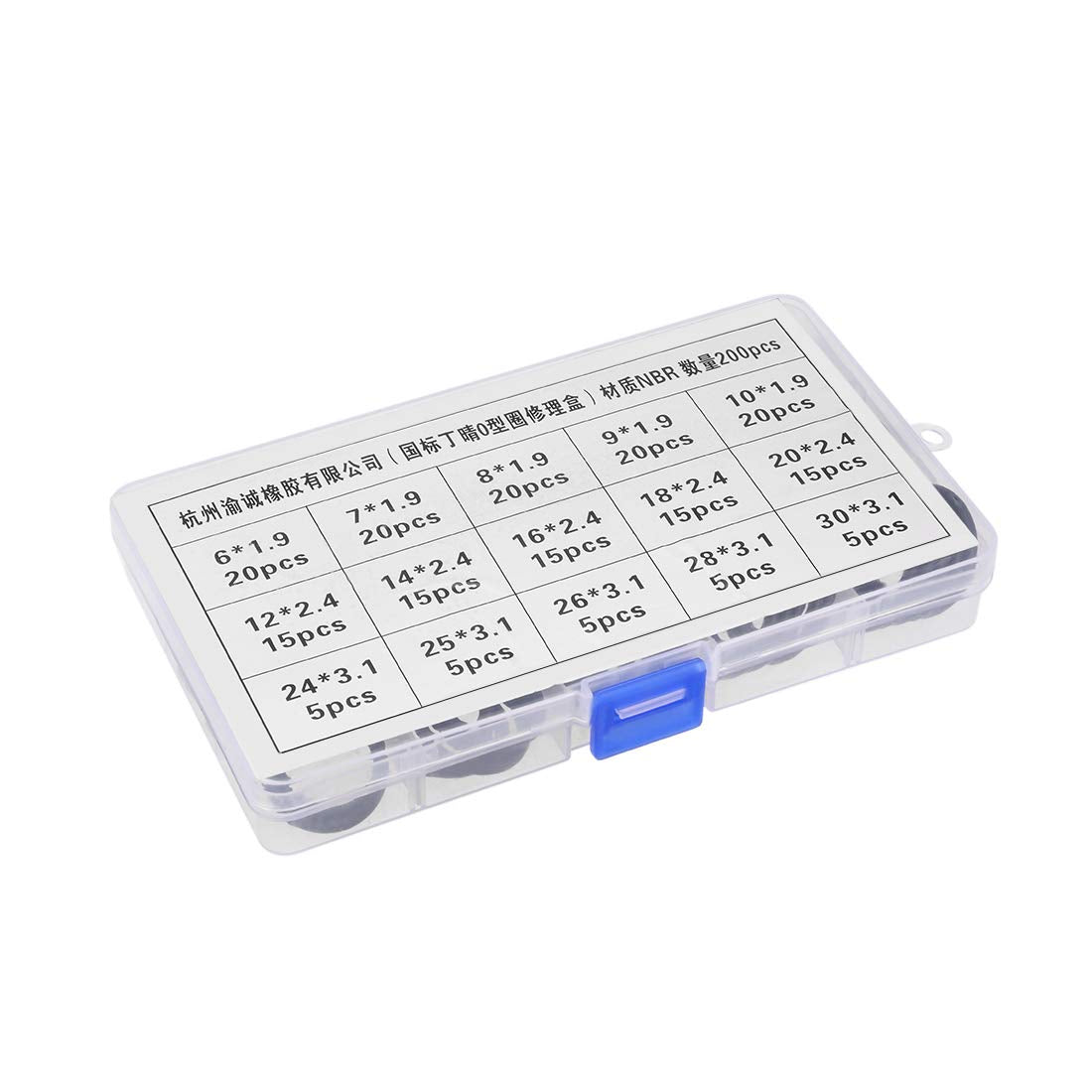 uxcell Nitrile Rubber O-Ring Assortment Kit 200 Pieces 15 Sizes Metric Sealing Gasket Set for Automotive Mechanic Plumbing, Black
