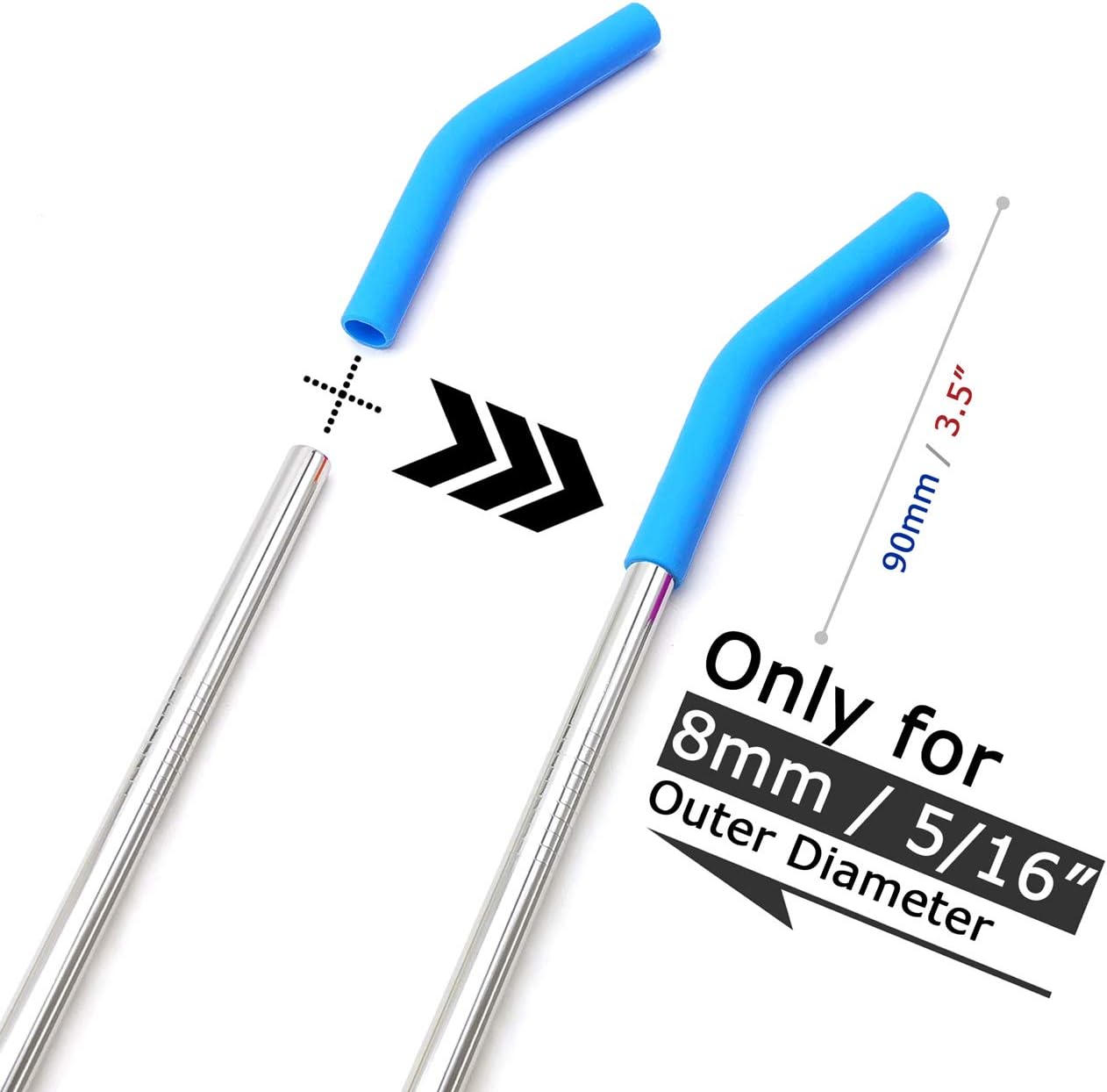 GFDesign Food Grade Silicone Straw Elbows Tips Soft Reusable Metal Stainless Steel Straw Nozzles Only Fit for 5/16" Wide (8mm Outer Diameter) Multicolor - Set of 8