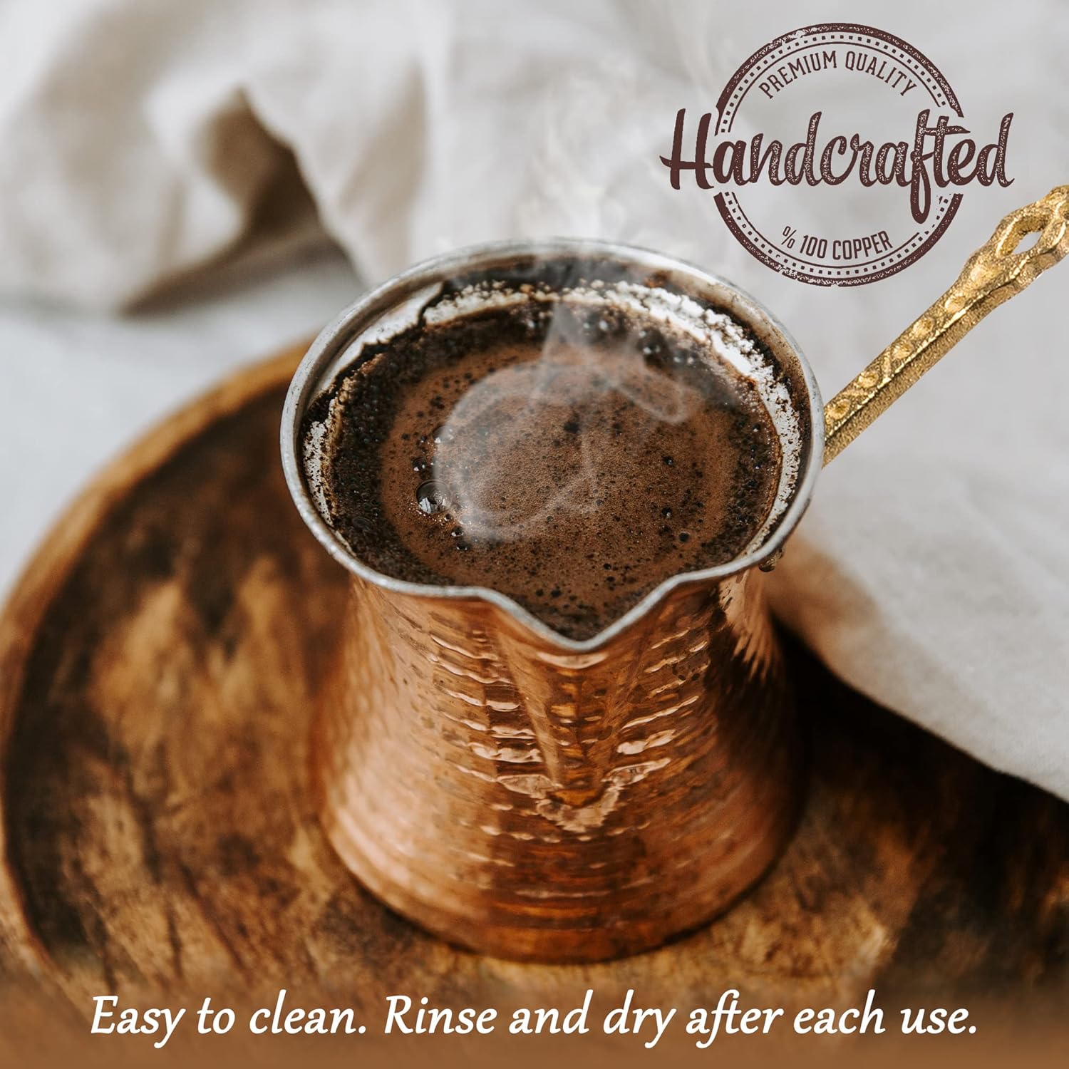 - PERFECT for Turkish Coffee Pot, Greek Coffee Pot, Arabic Coffee Pot, Briki, Milk Pot, Small Sauce Pan or Butter Melter. SPECIAL DESIGN, Strong and Ergonomic Handle, Food Safe Tin Lining Inside. Handle can get hot, please use oven mitts.