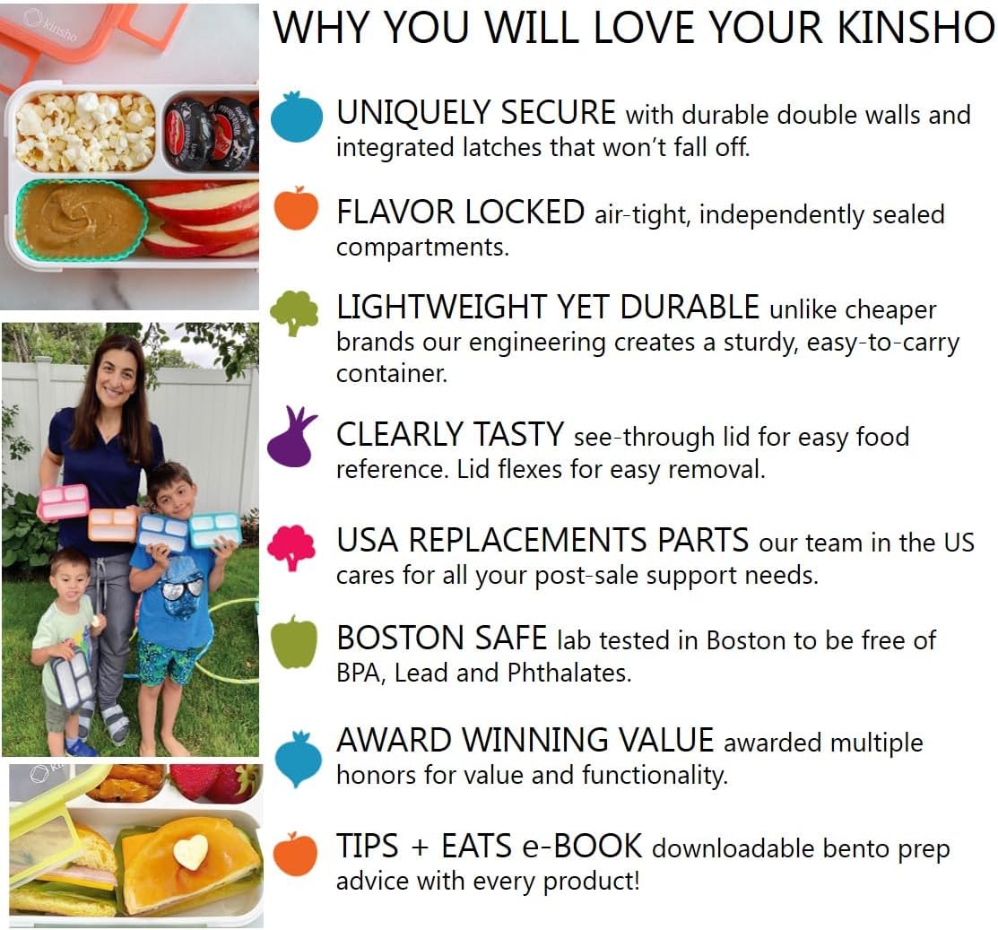 - KINSHO bento boxes NAMED "BEST VALUE" by SheKnows Media! FEEL CONFIDENT you are providing a healthy variety of well-portioned items. LEAKPROOF compartments keep food looking good and tasting fresh. SMILE when you hear comments that snacks or lunches look especially craveworthy in this modern design.