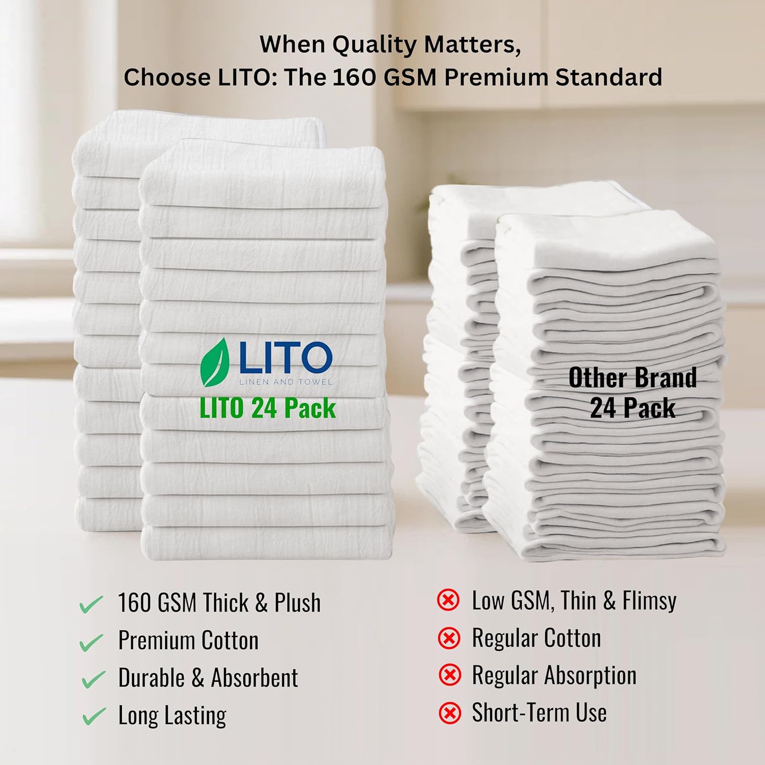Flour Sack Towels – 24 Pack Cotton Kitchen Dish Towels, Tea Towels for Crafts, Embroidery, Baking, Bread Proofing – Thick, Absorbent, Quick-Dry – 28"x28" Natural