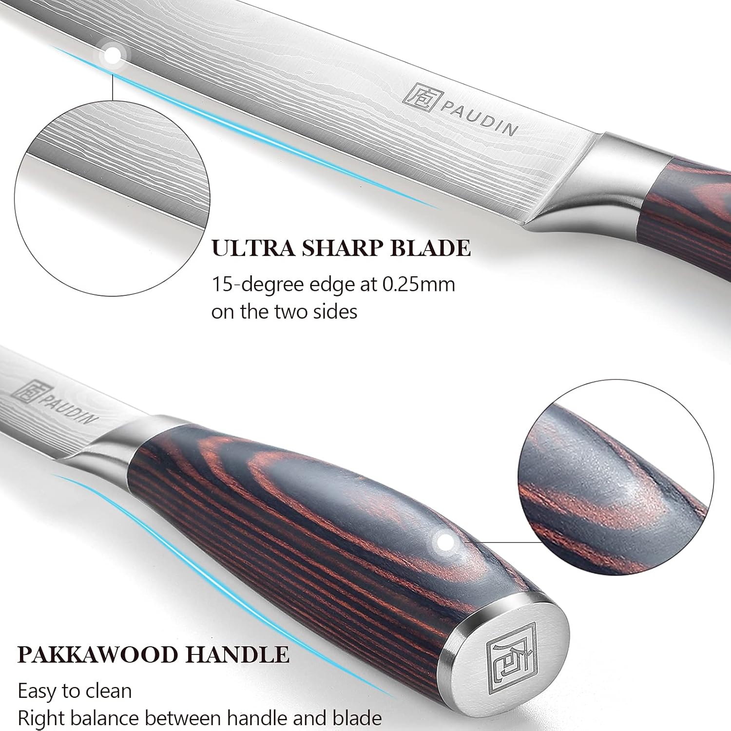 - EXPERIENCE COMMITMENT: Paudin offers a lifetime warranty against defects in material and workmanship. This meat cutting knife also comes with a personalized box, making it perfect as a special gift for any occasion.