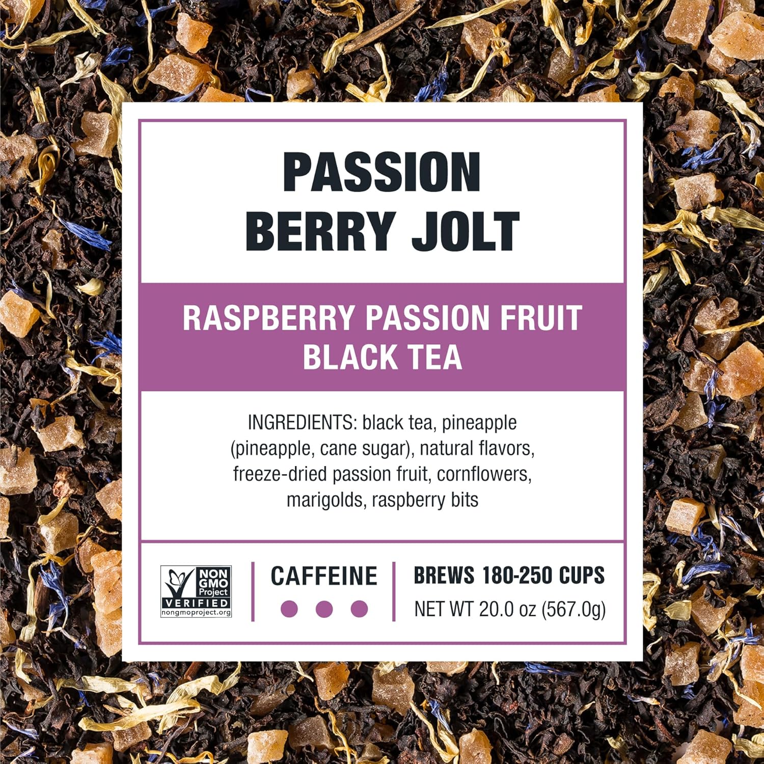 Tiesta Tea - Passion Berry Jolt, Loose Leaf, Raspberry Passion Fruit Black Tea, Premium High Caffeinated Black Blend, Make Hot or Iced, 16oz Bulk Pouch & 4oz Refillable Tin Combo