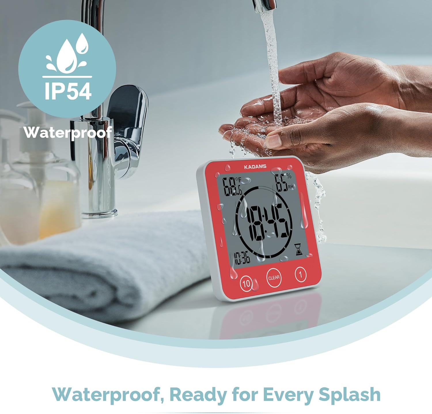 - 【 Efficient Time Management】Stay organized and save resources with KADAMS waterproof shower timer clock, featuring an LCD touch display, designed to help you keep track of your daily schedule.