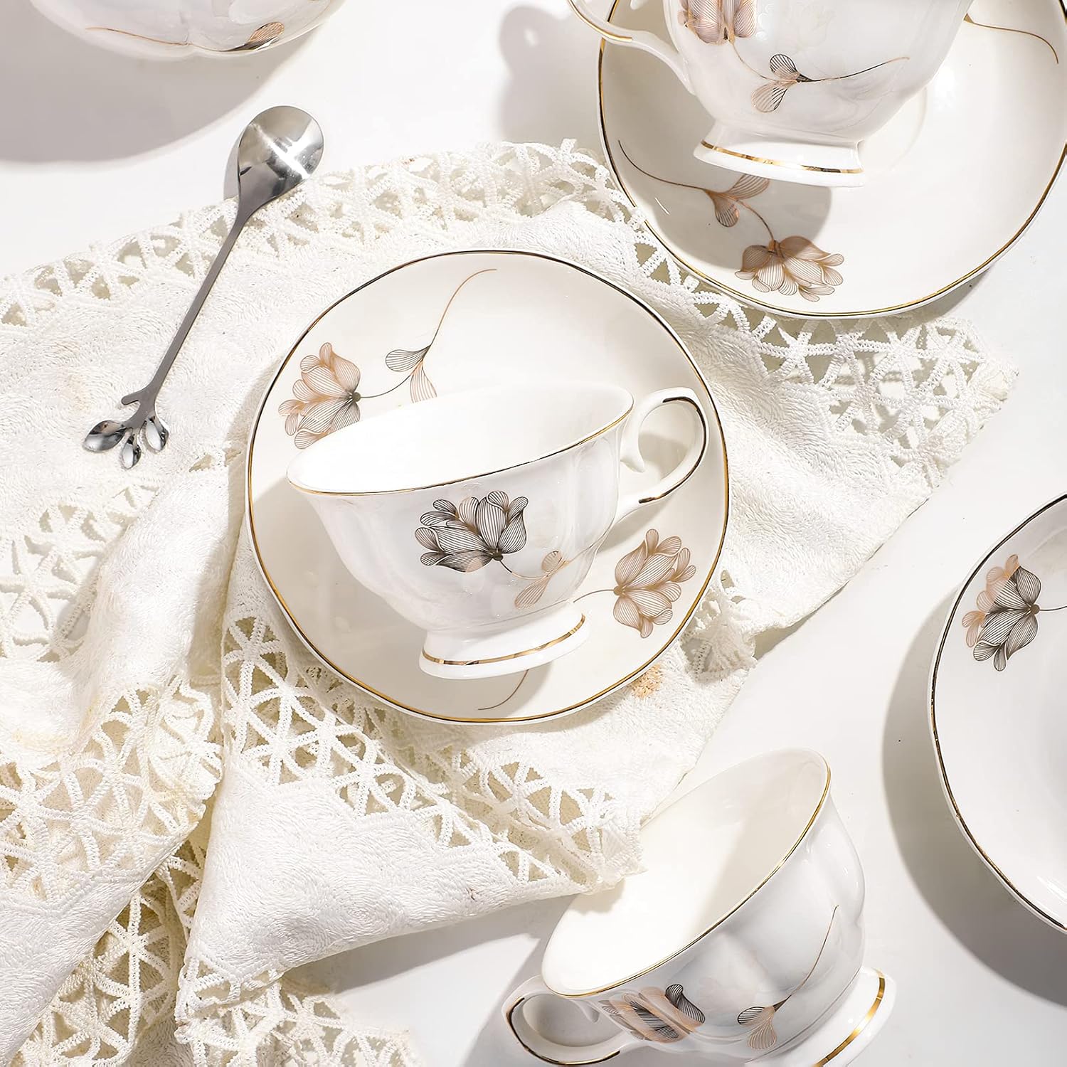 - Perfect Gift Idea for Tea/Coffee Lovers: The elegant tea gift set makes the perfect gift for occasions, like Mother's Day, weddings, anniversaries, Christmas, Valentines, birthdays, or other gift-giving opportunities. The decent design also makes a great home decor, you will surely enjoy having guests with this set on your table, not matter with black tea, green tea, flower tea, milk or coffee. Comes with an exquisite package, which is much safer, and better for Environment.