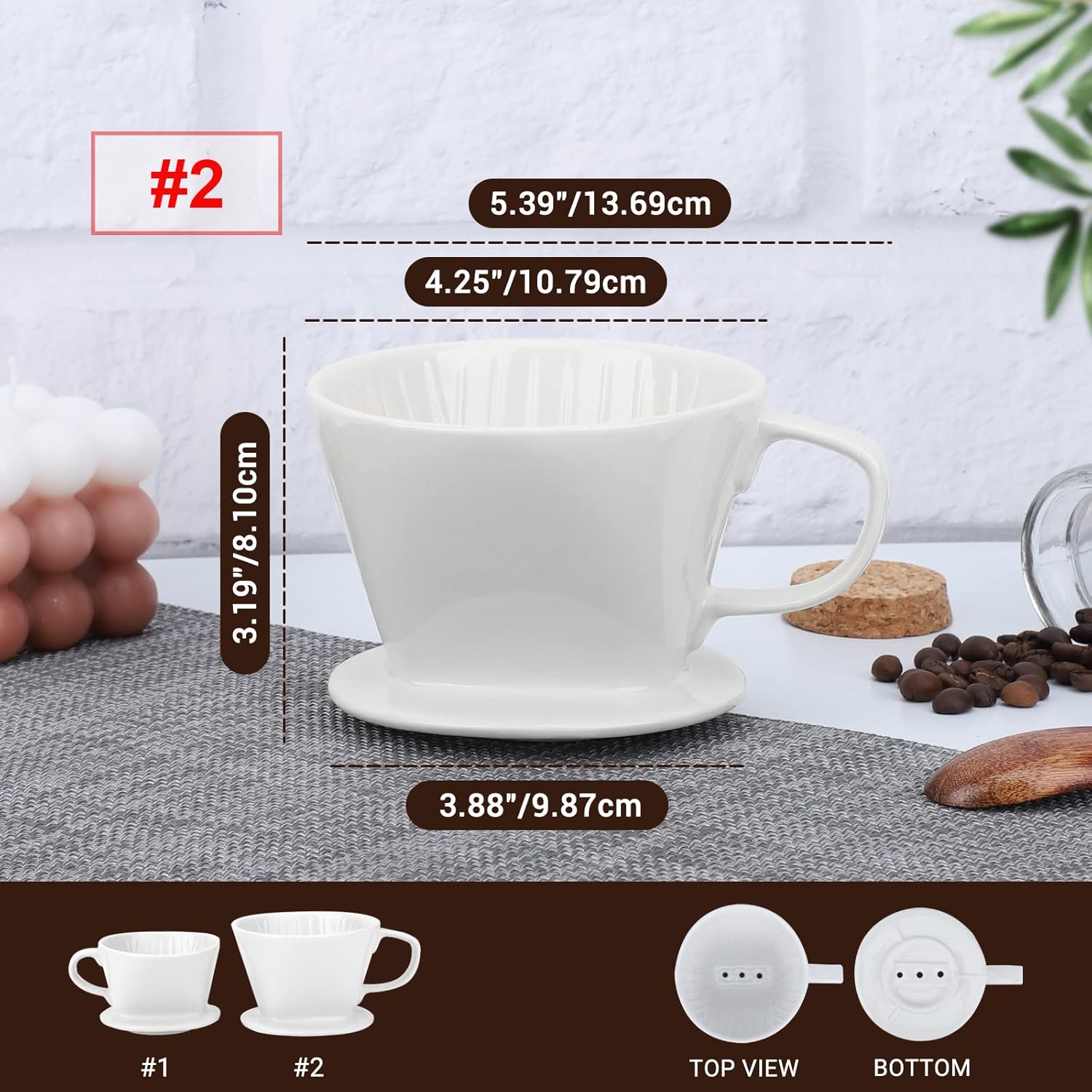 - Kind Tips for Dripper Cup: Please Note that due to differences in camera angles and lighting conditions, the color of the ceramic coffee filter cups you receive may vary slightly from the photos. In reality, the dripper cup is more like beige rather than pure white!