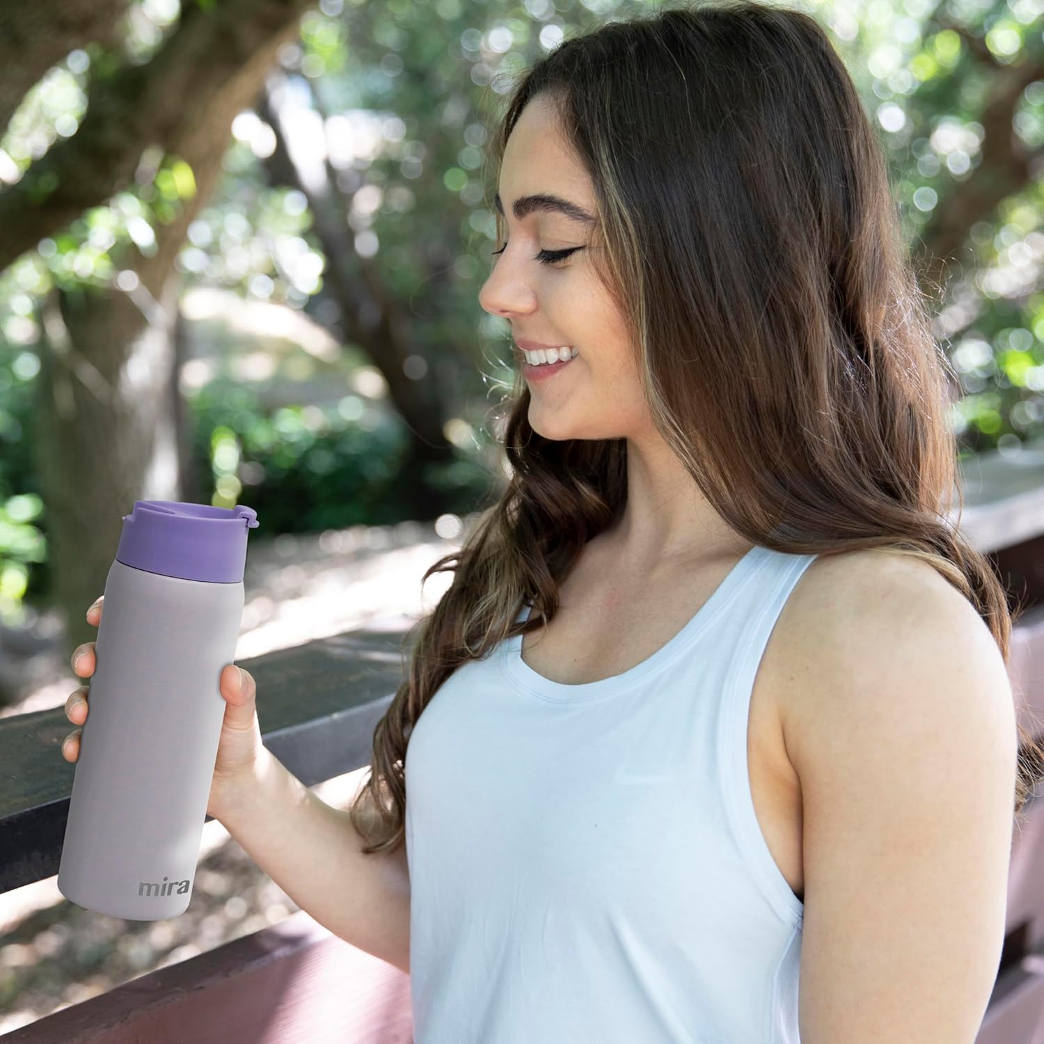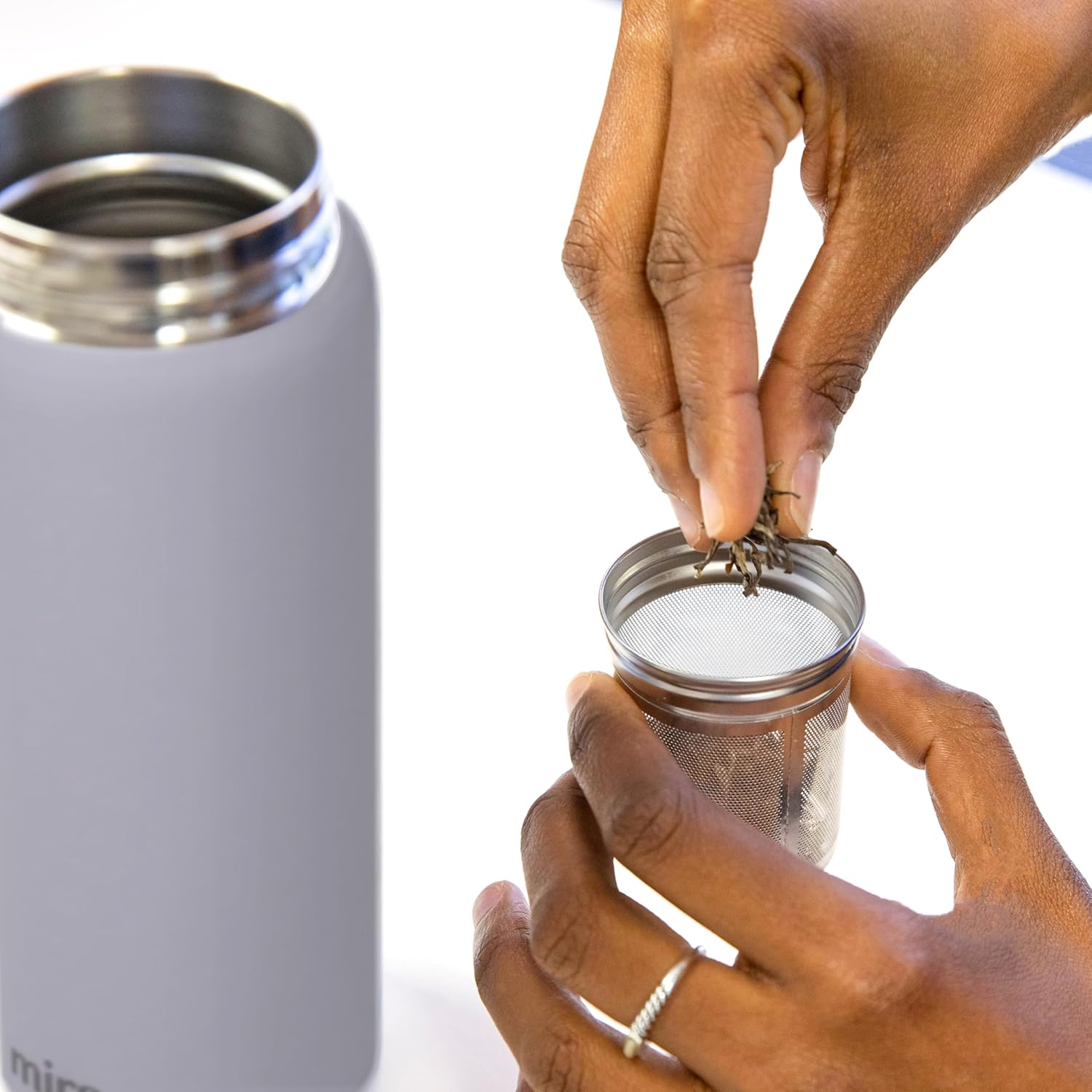 MIRA 18 oz Tea Infuser Thermos - Stainless Steel Travel Bottle with Removable Strainer for Loose Leaf Tea - Insulated Hot & Cold Brew Steeper - Heather