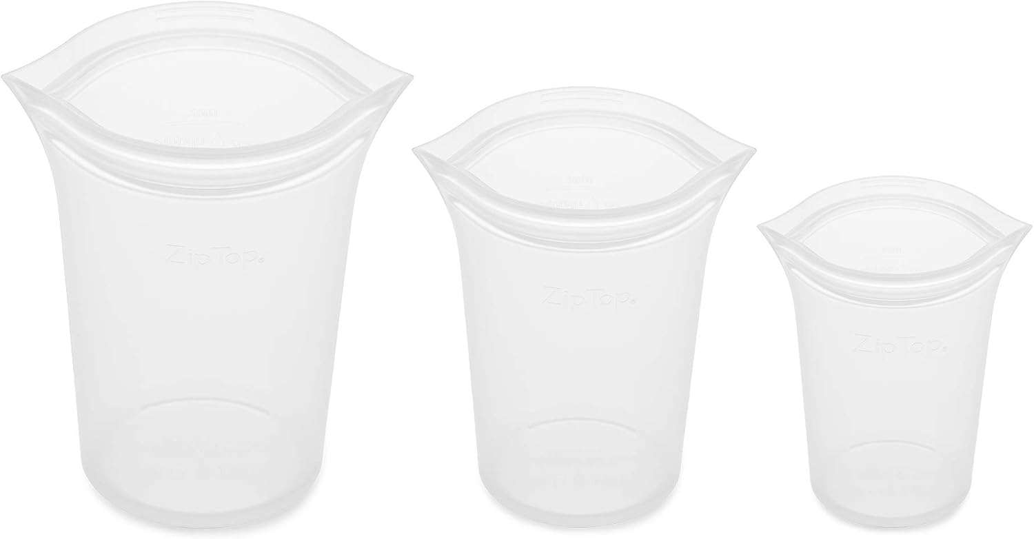 Zip Top Reusable Food Storage Bags | 3 Cup Set [Frost] | Silicone Meal Prep Container | Microwave, Dishwasher and Freezer Safe | Made in the USA