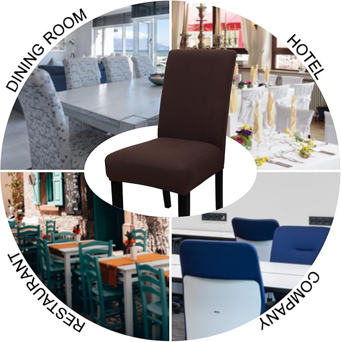 JQinHome 4 Pcs Dining Chair Slipcover,High Stretch Removable Washable Chair Seat Protector Cover for Home Party Hotel Wedding Ceremony (Pack of 4, Coffee)