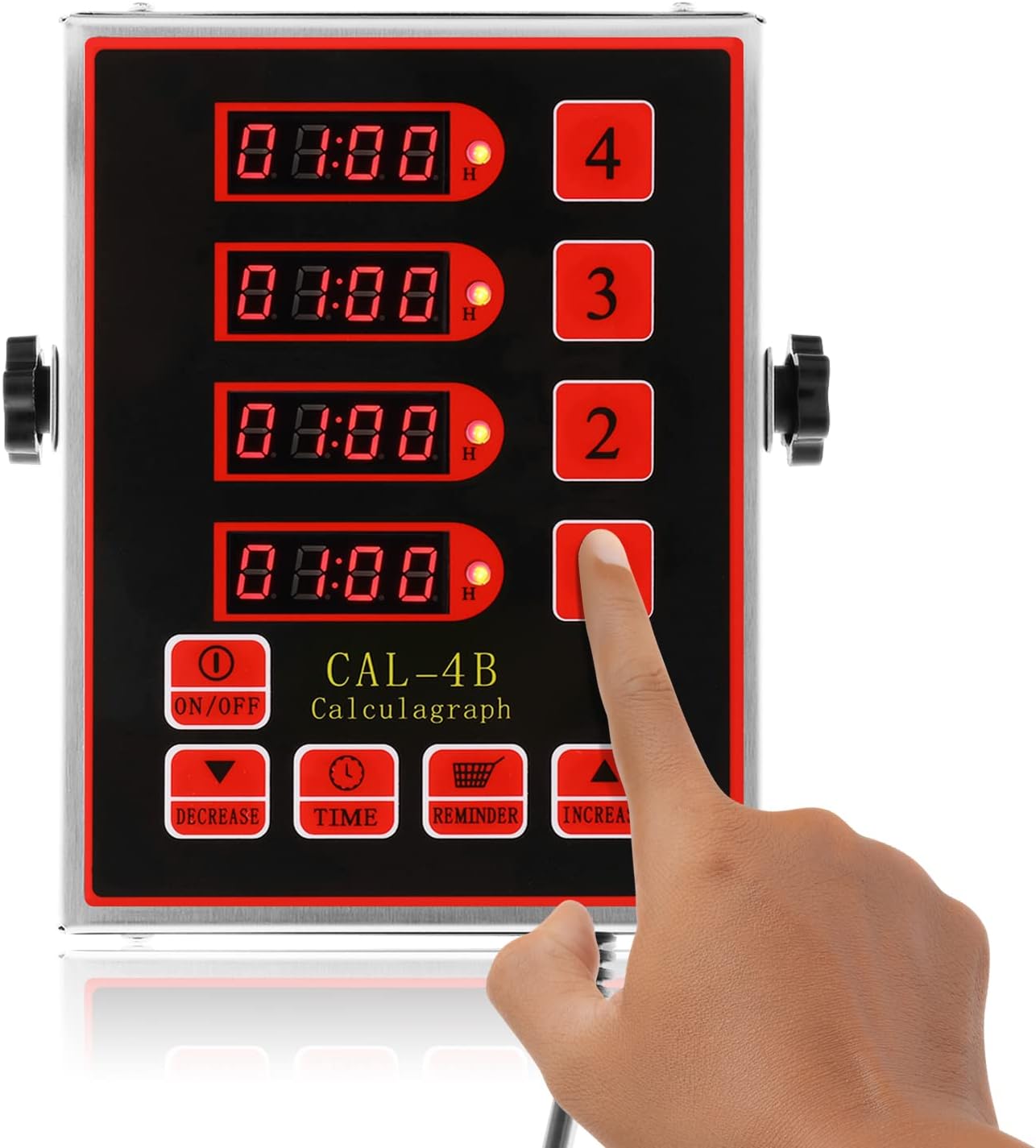 - PRACTICAL TIMER FUNCTION - Each time window of BEAMNOVA 4-Channel Timer Clock can be set independently from 0 ~ 99 minutes and 59 seconds (0 to 99 hours 59 minutes). Each set of the timer contains 1 total time and 1 basket shaking time (interval reminder time). The setting of each time window does not affect the setting of other time windows. Users can also reset a time window by pushing the button on the side.