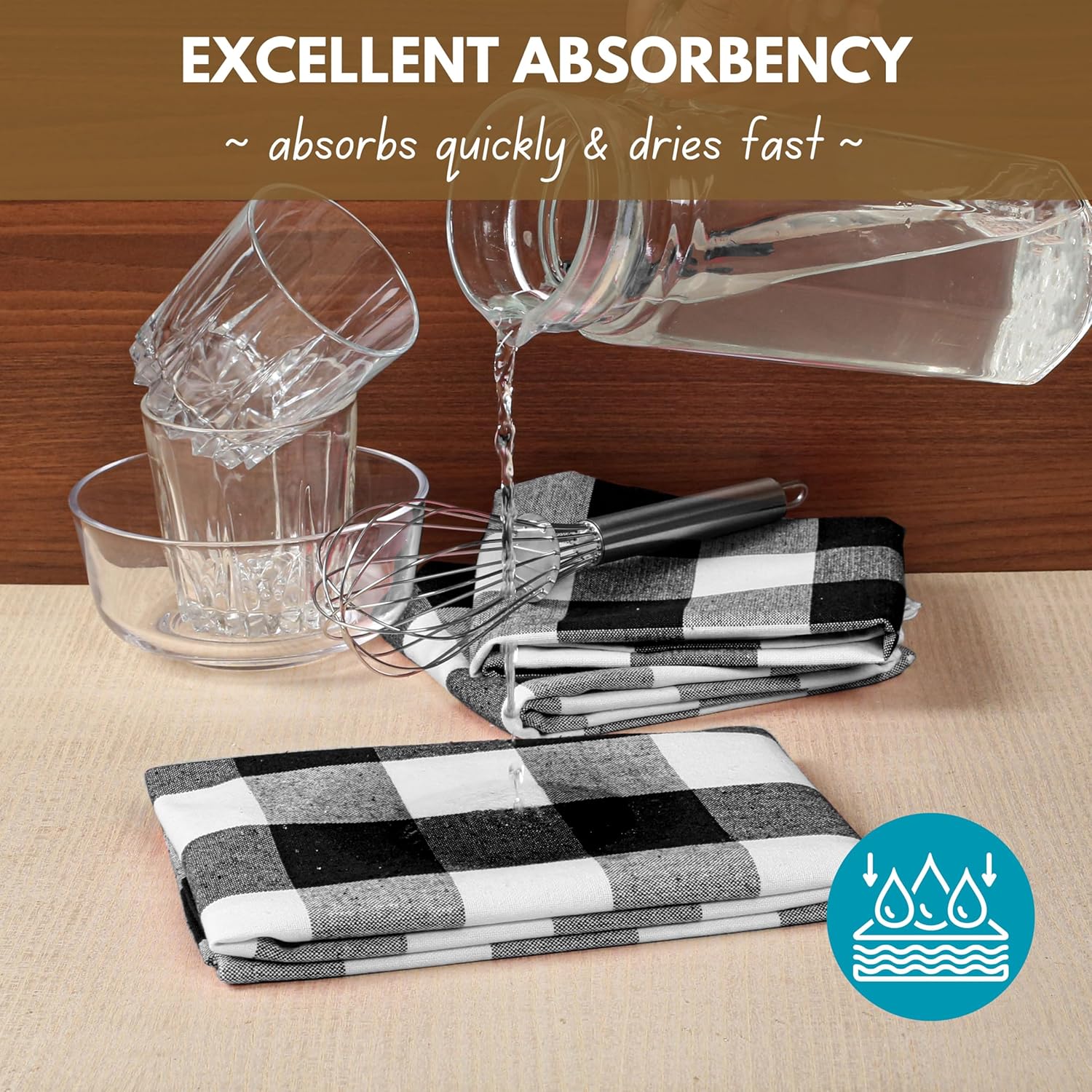 Native Fab 6-Pack Kitchen Towel with Hanging Loop 16x26 inches, Cotton Buffalo Check Kitchen Towels for Cleaning Drying, Washcloths Soft & Absorbent Cloth Rags, Bar Towel, Dish Cloth, Black