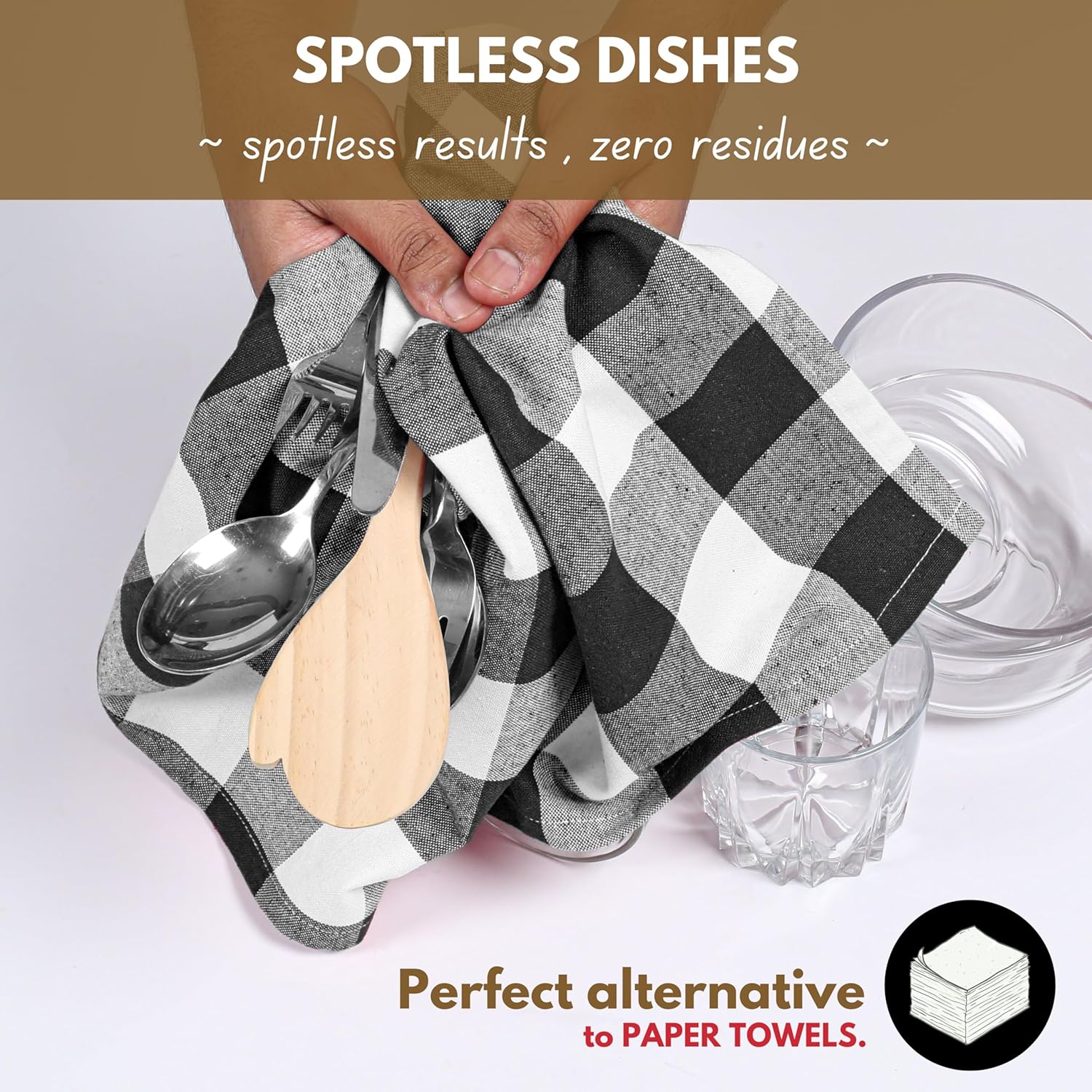 - 100% COTTON MATERIAL: Enjoy our soft, durable, and absorbent towels, perfect for everyday kitchen tasks.