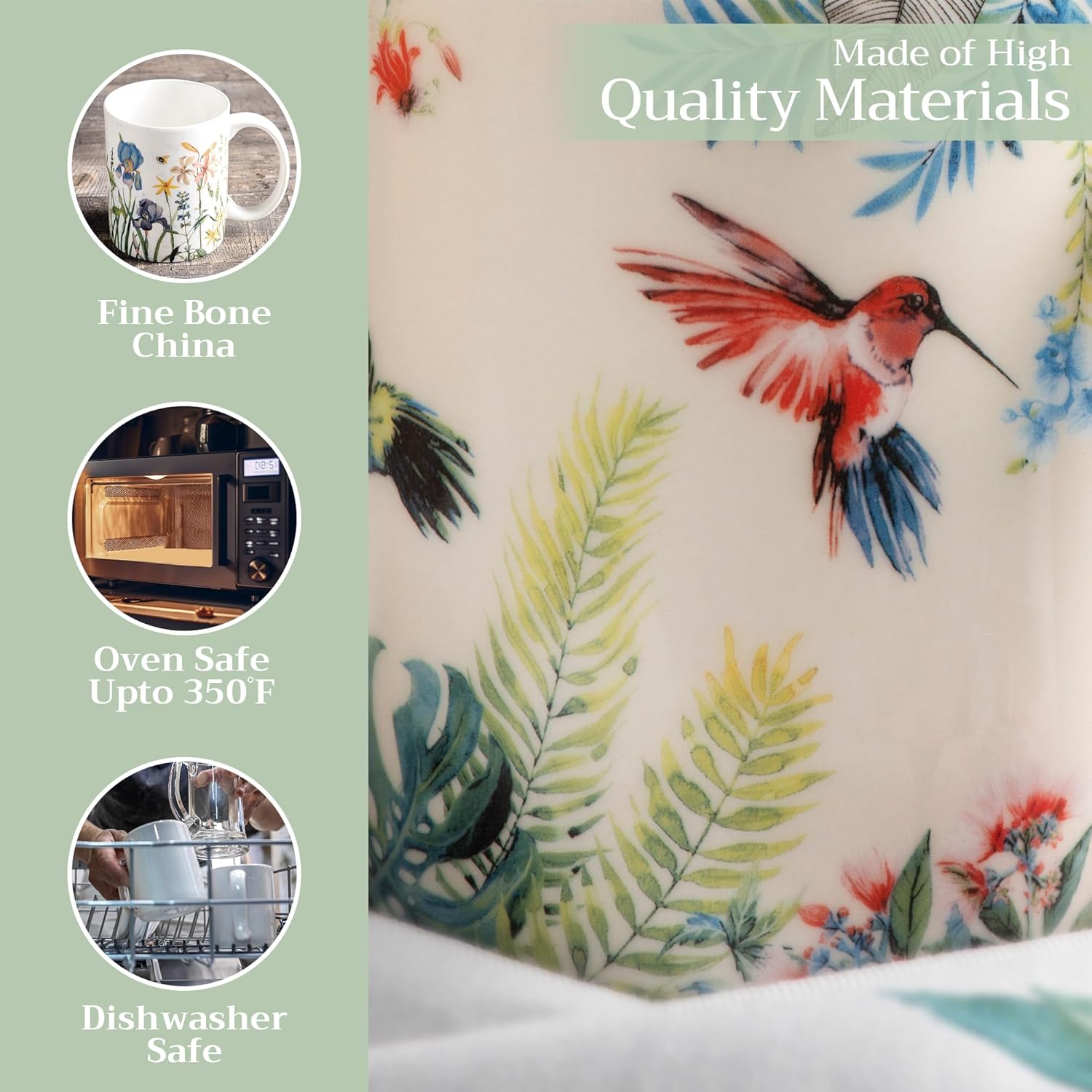- Easy Care & Maintenance: Microwave, dishwasher, and oven safe up to 350°F. These bone china mugs are built for convenience and durability, making cleanup and reheating simple without compromising on quality