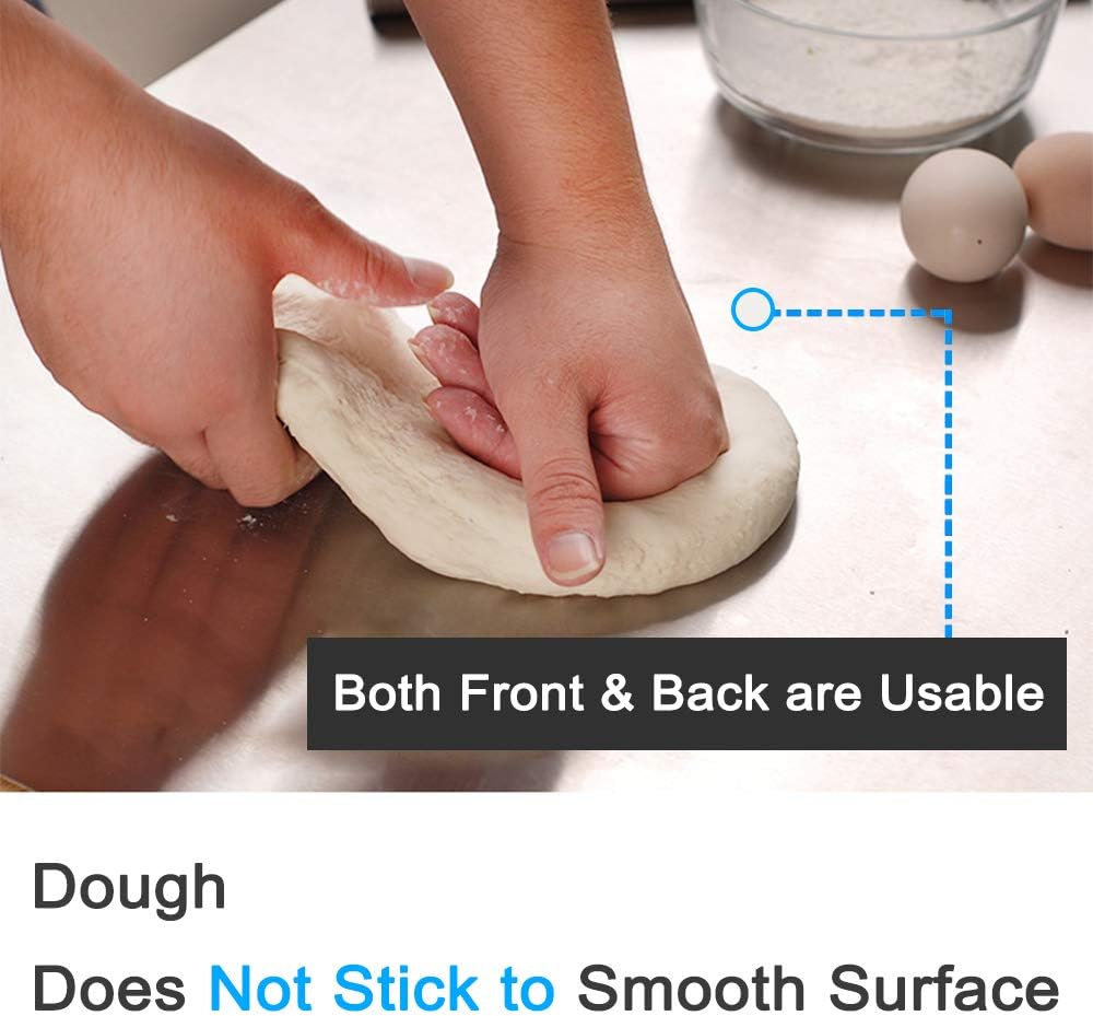 - 【Large Size stainless steel cutting board】The size of 27.6 x 19.7 inches perfectly meets all your cooking and baking needs in the kitchen, giving you more space to prepare exquisite dishes. In addition, it is dishwasher-safe. Debris can be rinsed by water or wiped by the dishrag. You don't need other tools to remove extra dough or other material from it.